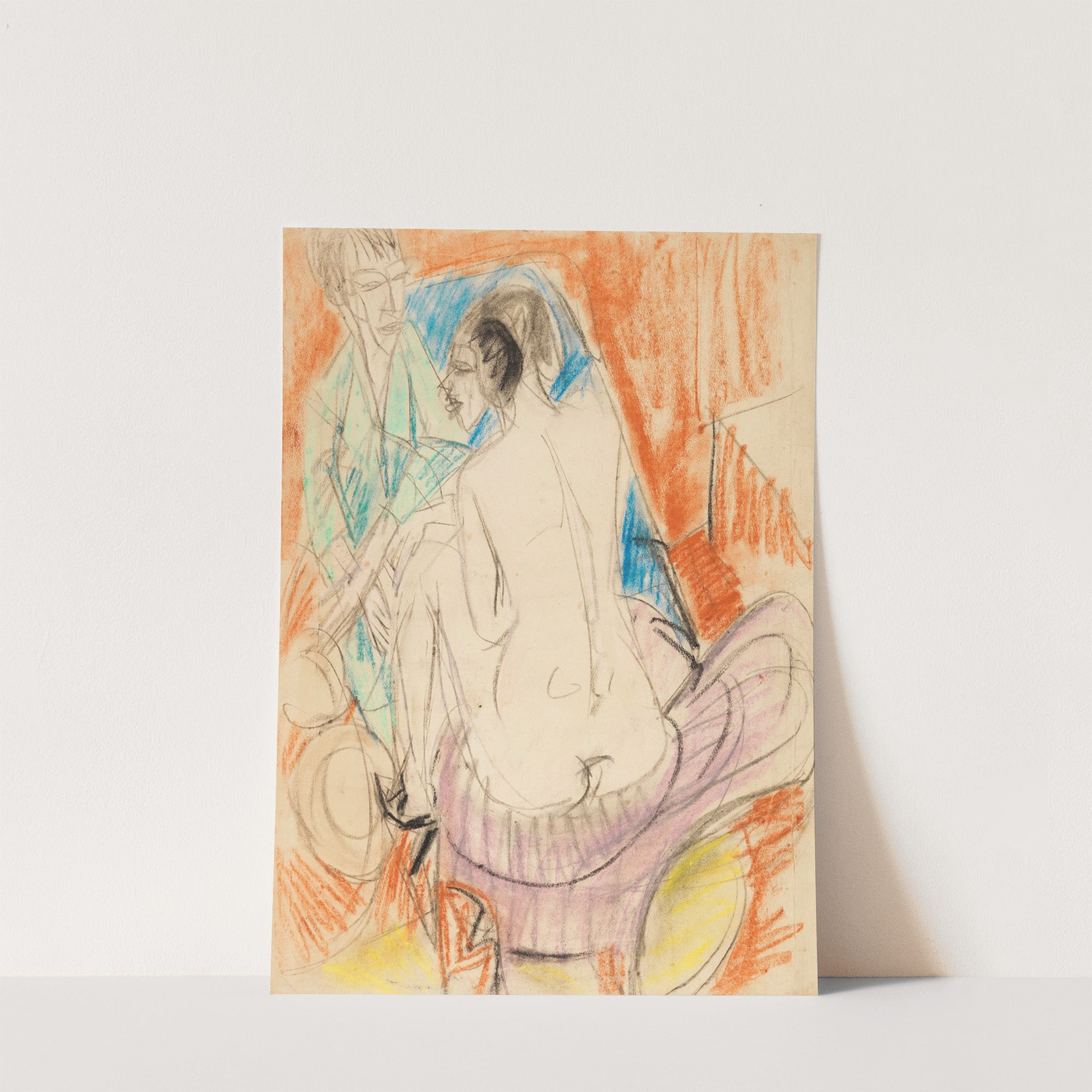 Selbstporträt mit Gerda (Mann und Sitzende im Atelier) (1915) by Ernst Ludwig Kirchner - Wall Art Print