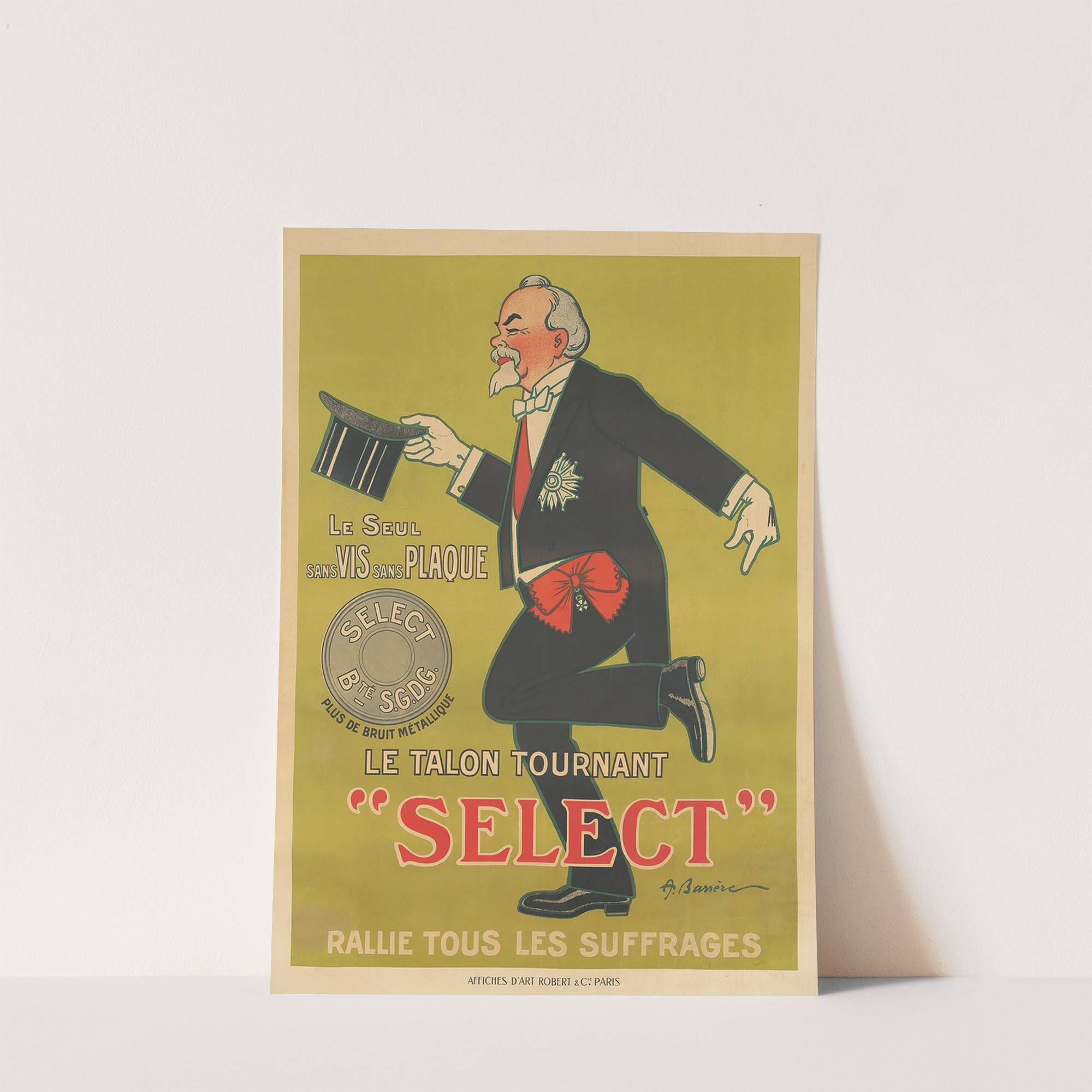 This vibrant print is titled "Le Talon Tourne Séllect" by the artist Adrien Barrière, showcasing a humorous and colorful caricature. The central figure is an older man with a bald head, distinguished by his white beard and mustache. He is...