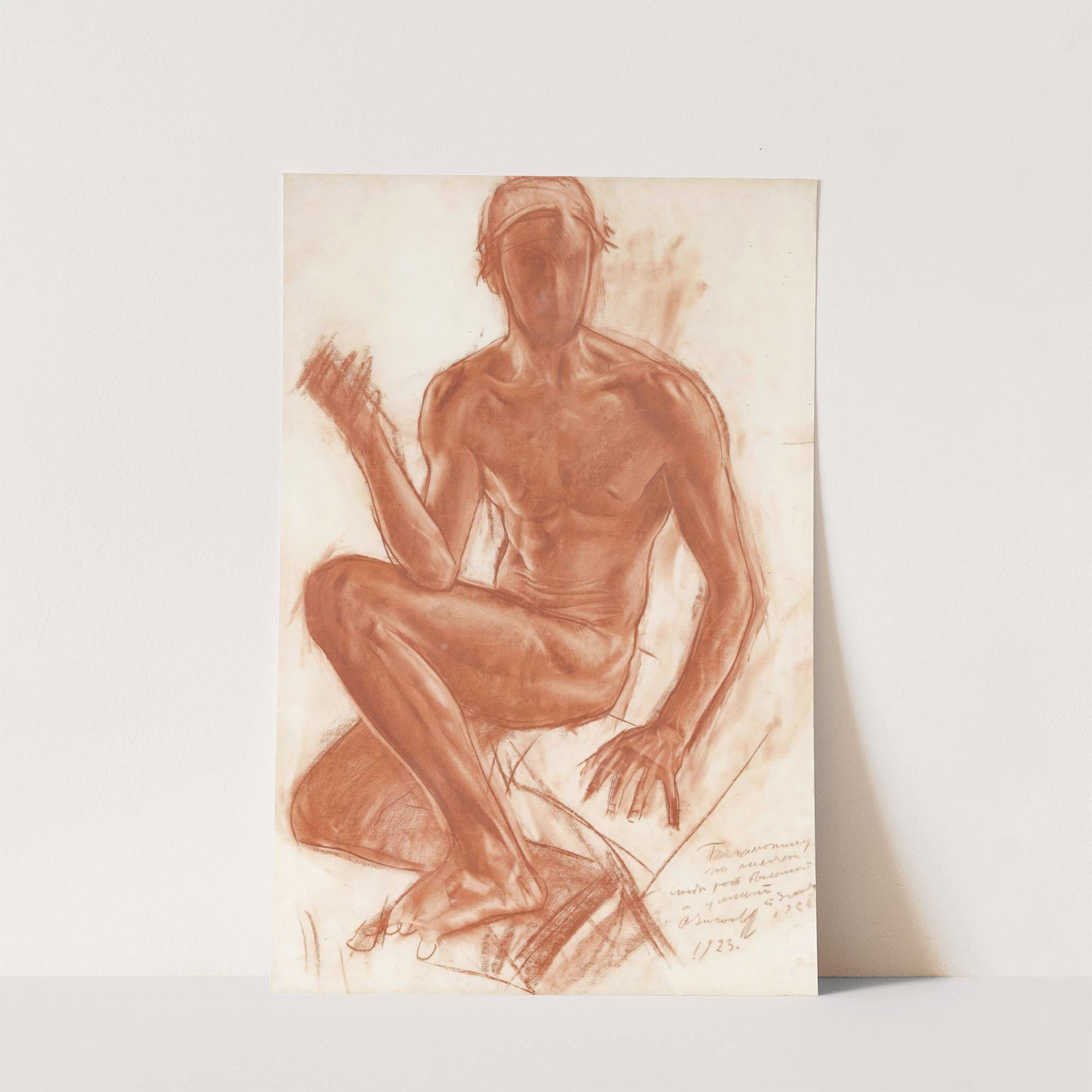 Discover the captivating "Self-Portrait" by Alexandre Jacovleff, an exquisite piece of art rendered in monochromatic red pencil sketches. This dynamic portrait showcases a male figure in a seated pose, capturing both movement and stillness. The artist employs soft, flowing lines...