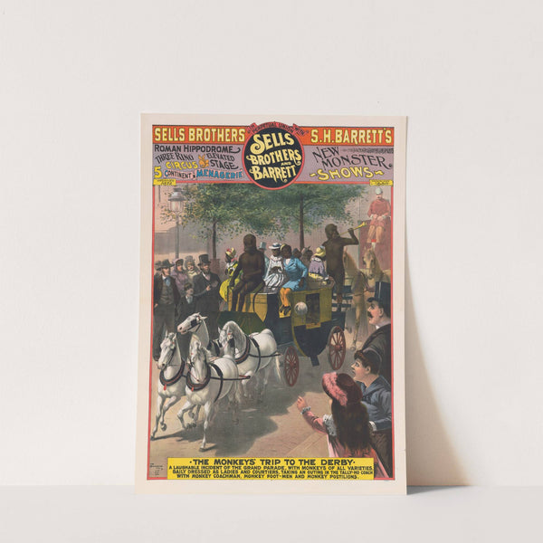 Sells Brothers and Barrett. The monkey’s trip to the derby (1890) by Strobridge & Co. Lith. - Wall Art Print