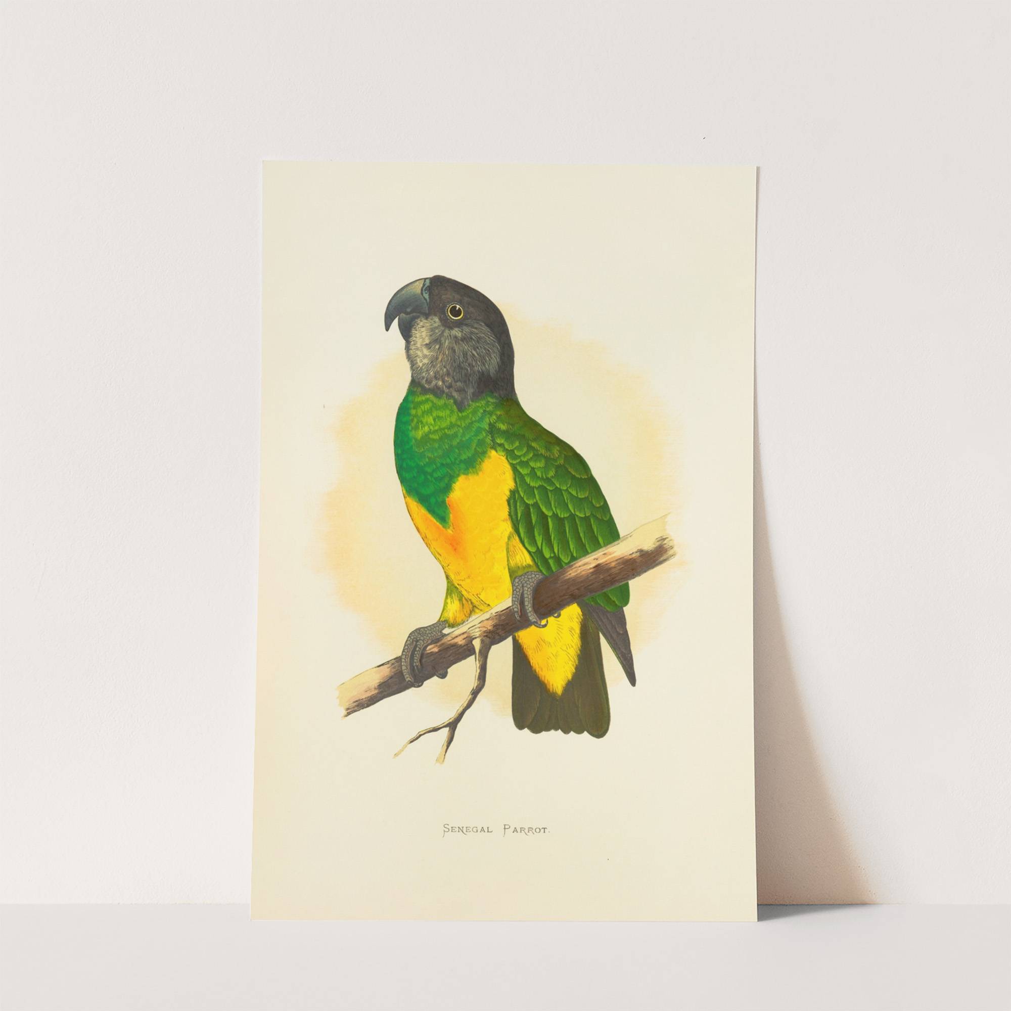 This vibrant art print features a beautifully detailed illustration of a Senegal Parrot by the artist Alexander Francis Lydon, dated 1884-1887. The parrot is rendered with intricate precision, showcasing its striking coloration against a simple white background. The bird's head...
