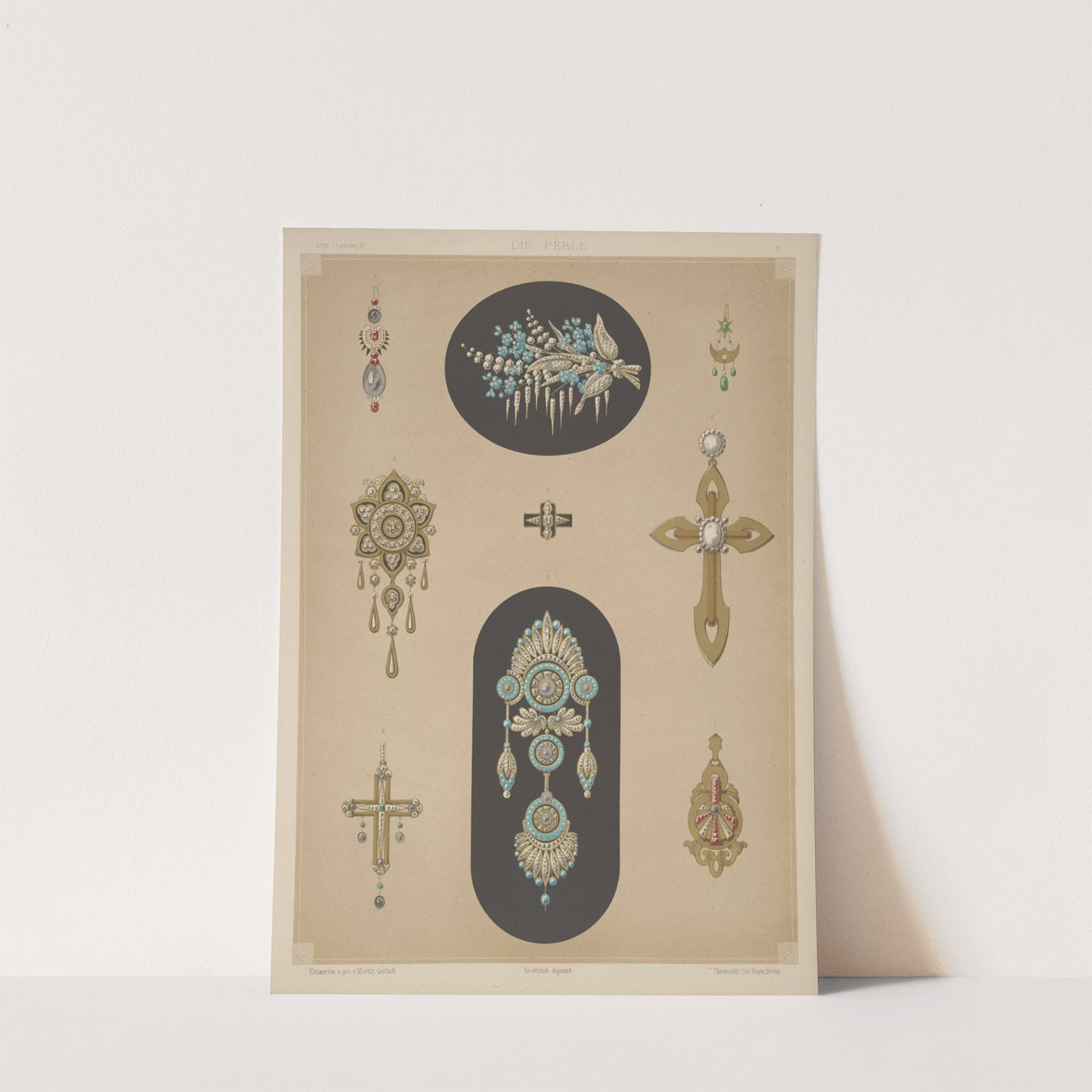 Seven Designs For Jewelry, Including Earring In Shape Of Gold Sword With Ruby Hilt. by Martin Gerlach - Wall Art Print