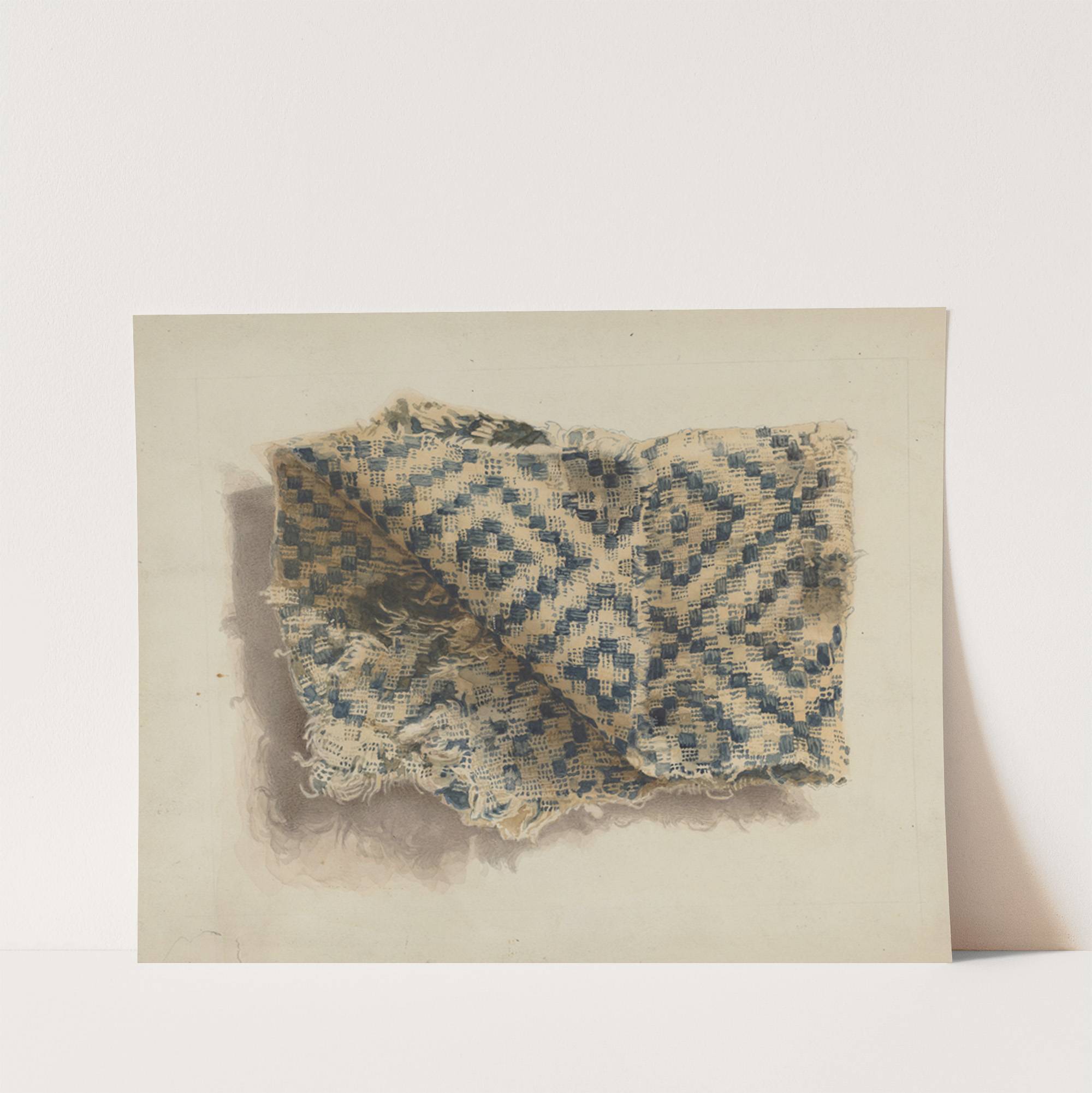 This art print features a beautifully detailed Shaker coverlet designed by Alois E. Ulrich. The fabric showcases a traditional geometric pattern in a soothing palette of blue and cream. The blue diamond shapes are arranged in an alternating pattern, creating...