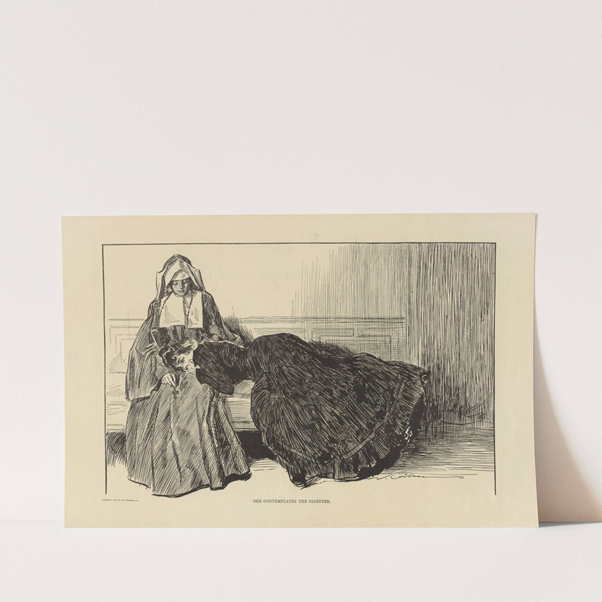 She contemplates the cloister by Charles Dana Gibson - Wall Art Print