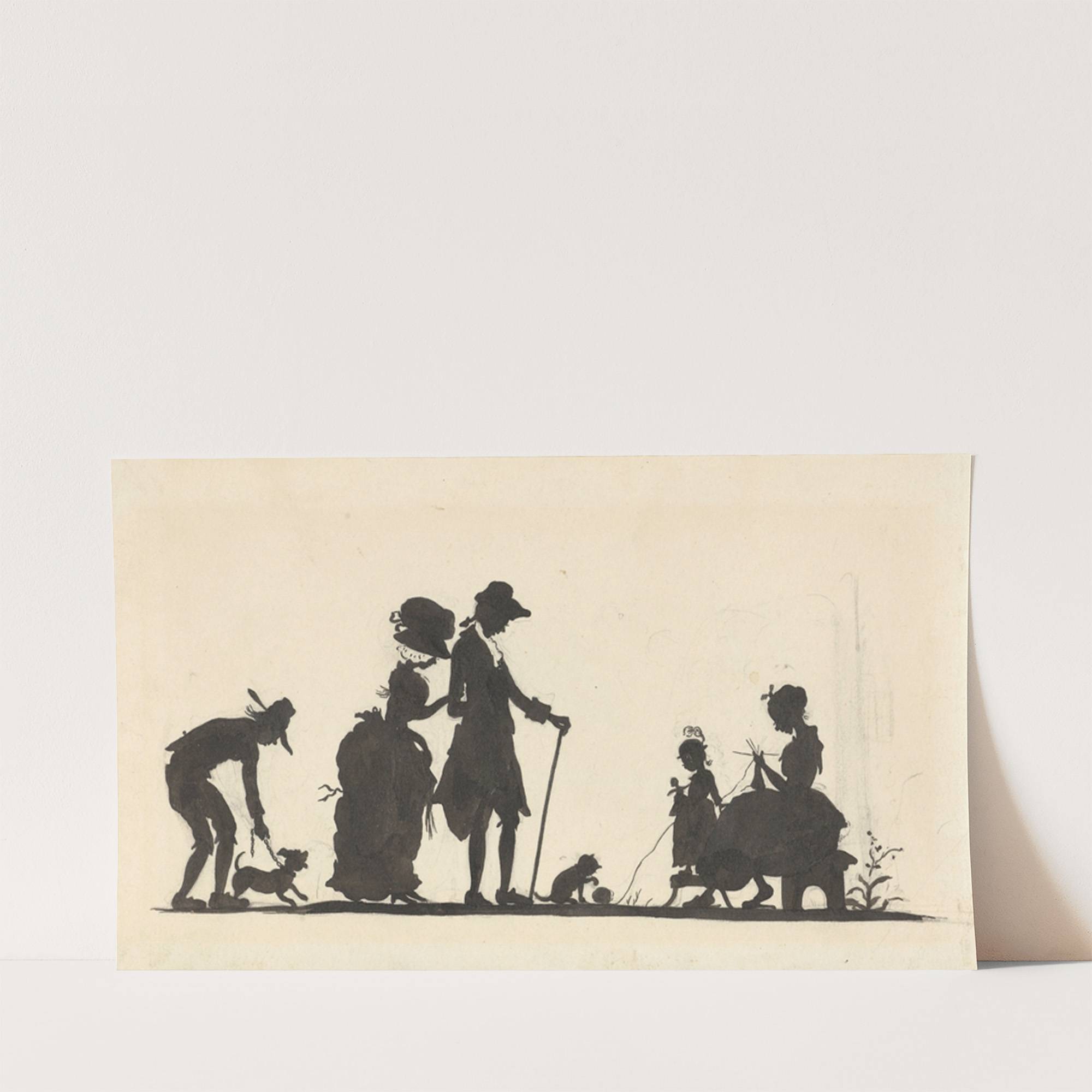 Silhouet van de familie met de hond en de kat by Nelly Bodenheim - Wall Art Print