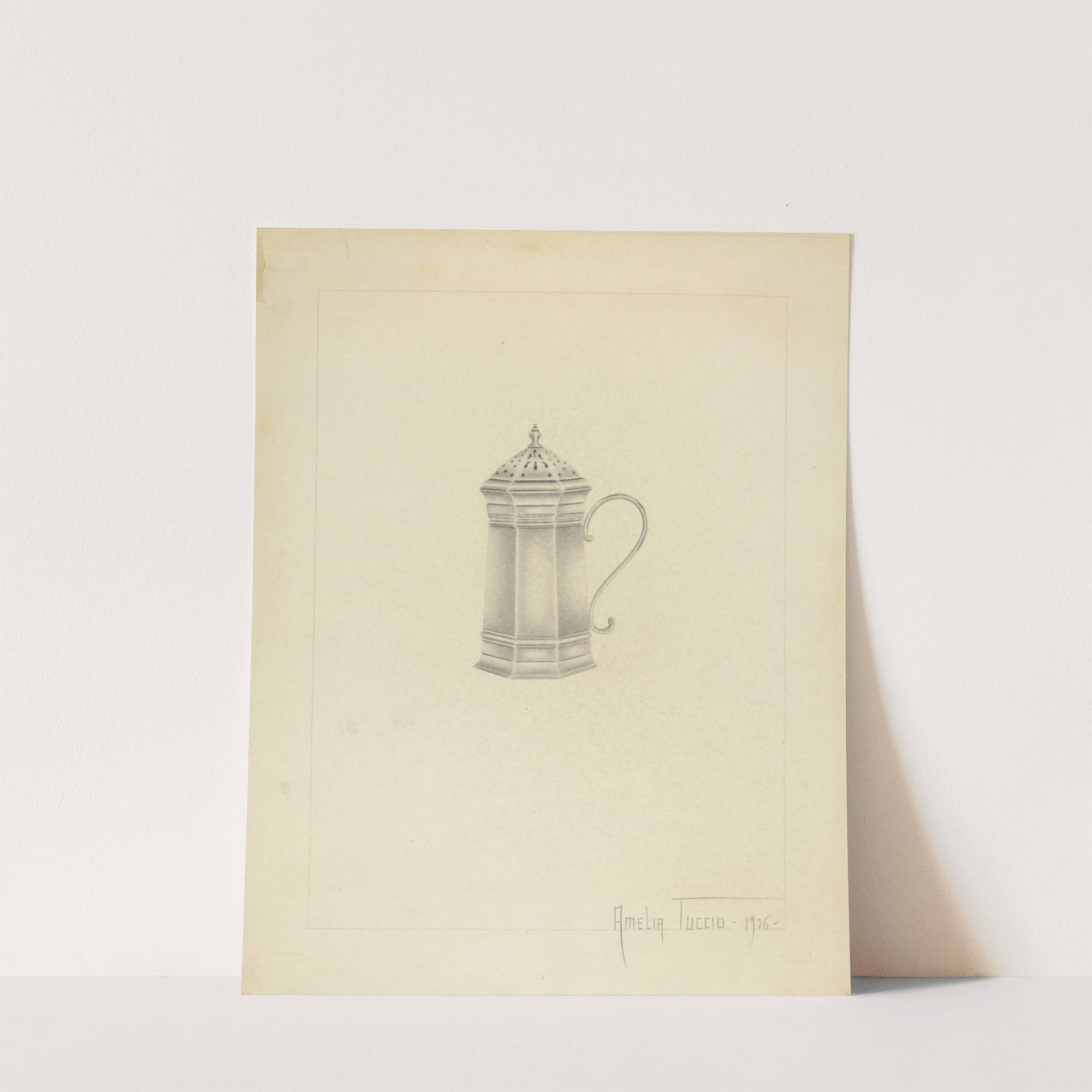 This elegant print showcases "Silver Teapot" by Amelia Tuccio, featuring a beautifully detailed grayscale illustration of an ornate silver teapot. The teapot is rendered with fine linework that highlights its classic, Victorian-style design elements, including a gently curved handle and...