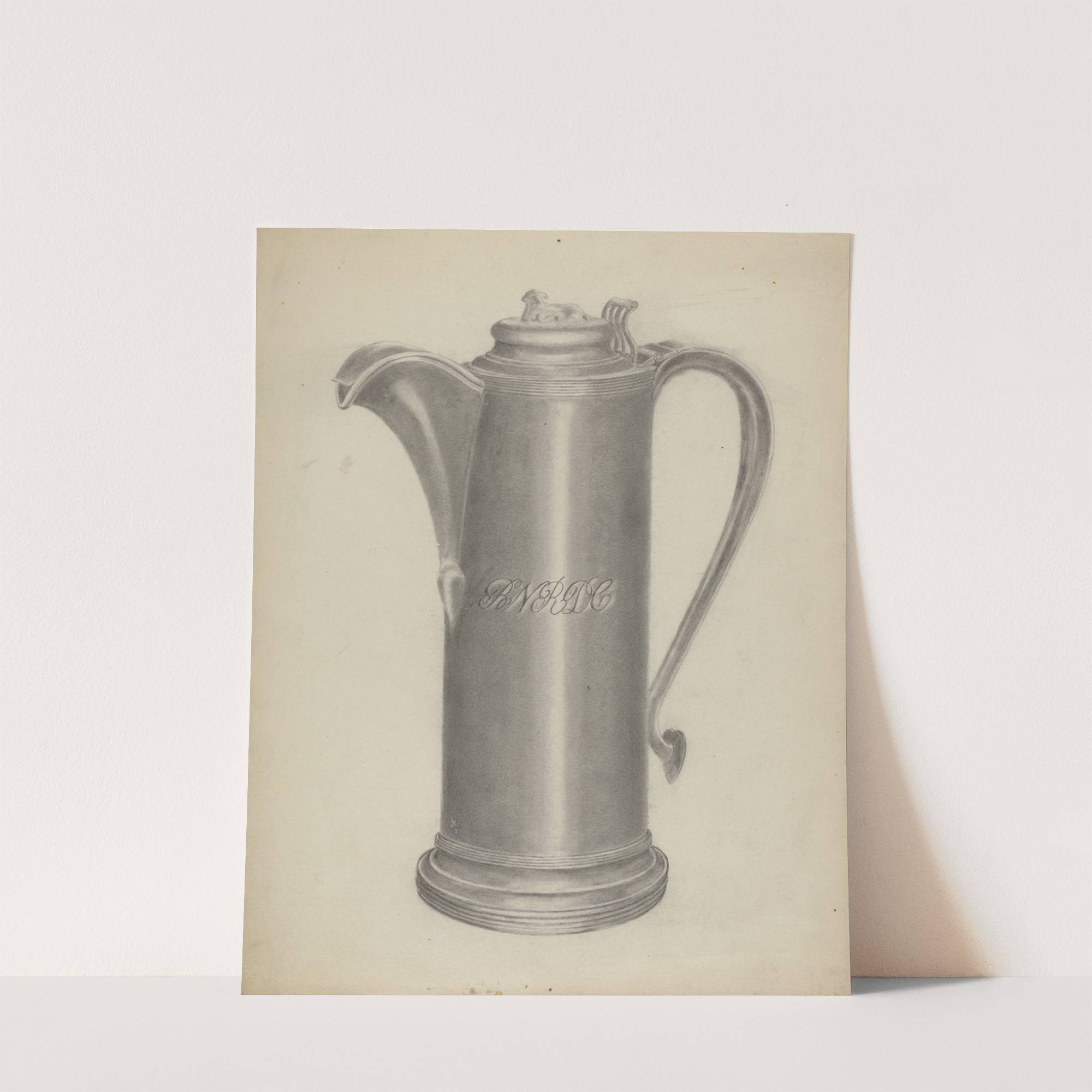 Introducing "Silver Flagon" by Albert Camilli, a stunning monochromatic artwork that captures the elegance of a classic silver pitcher with remarkable detail and precision. This exquisite piece features a sleek, cylindrical body adorned with an ornate handle that gracefully curves...