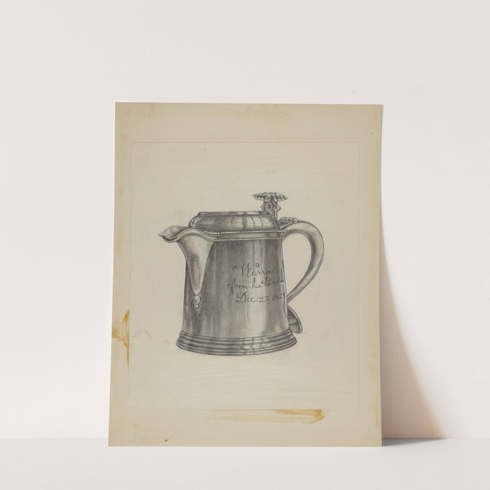 This exquisite art print features "Silver Tankard" by the skilled artist of American 20th Century. The piece is rendered in meticulous pencil drawing on textured off-white paper, showcasing remarkable detail and realism. The tankard is depicted with a classic Victorian...
