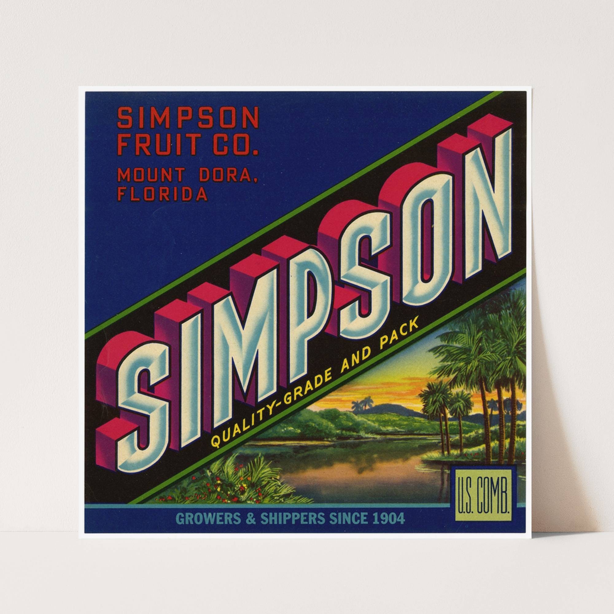 Simpson Fruit Label (1930-1950) - Wall Art Print