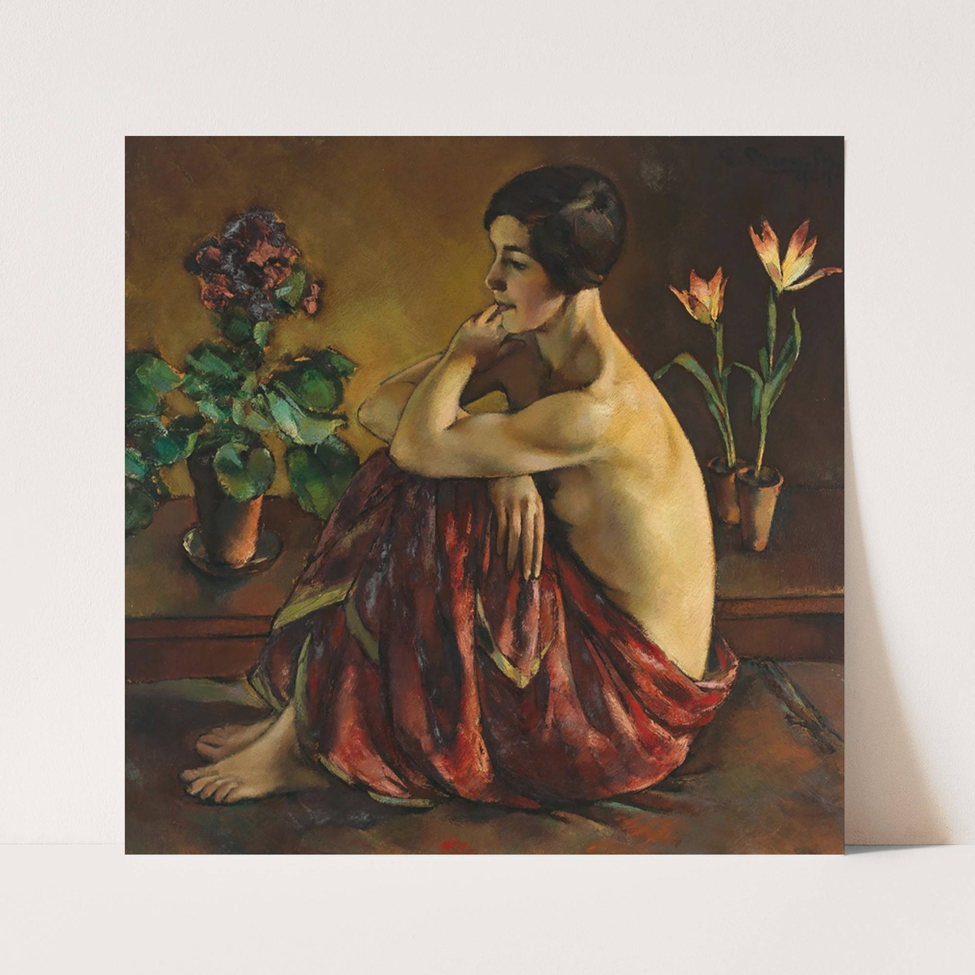Sitting nude with red scarf by Egge Sturm-Skrla - Wall Art Print