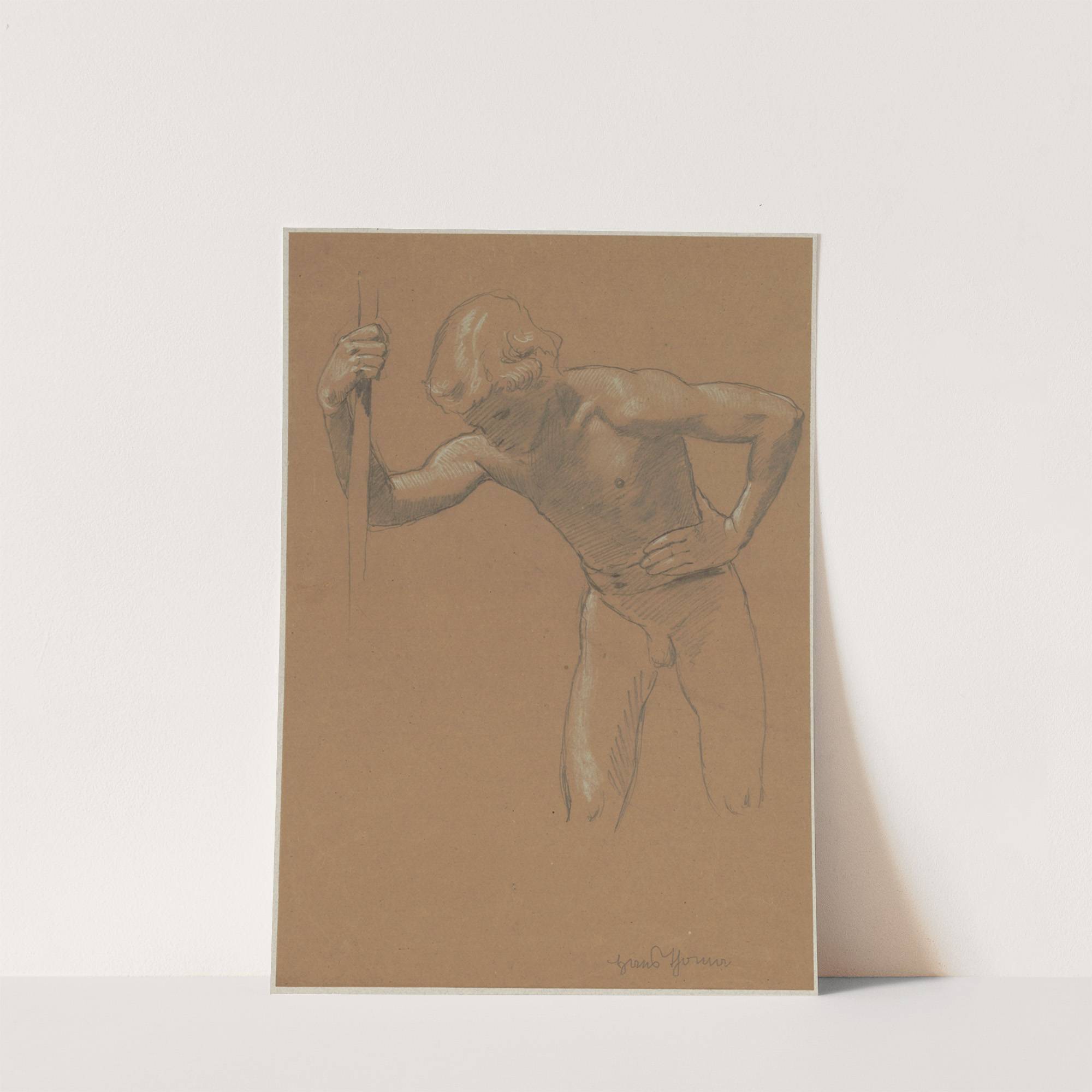 Sketch of a naked boy leaning forward (1880 - 1900) by Hans Thoma - Wall Art Print