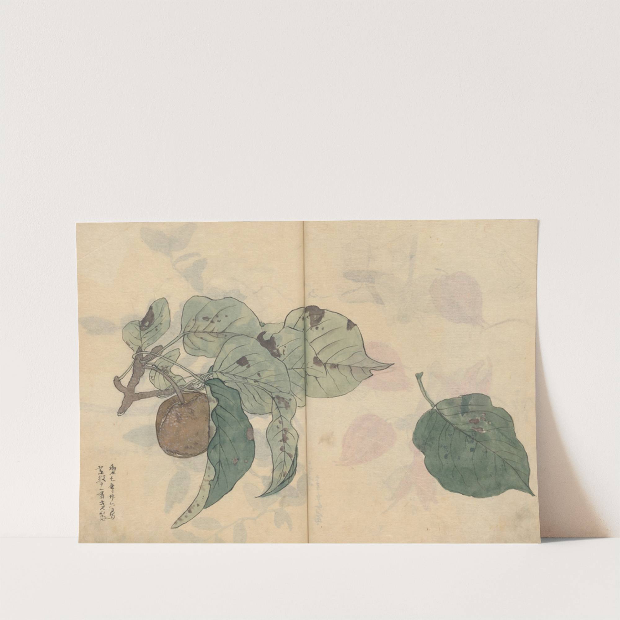 This exquisite art print features a delicate botanical illustration titled "Sketchbook Pl.050 (1826-1840)" by the skilled artist Ariyoshi Kondo. The artwork showcases a detailed and intricate depiction of a plant with large, green leaves adorned with subtle brown spots and...