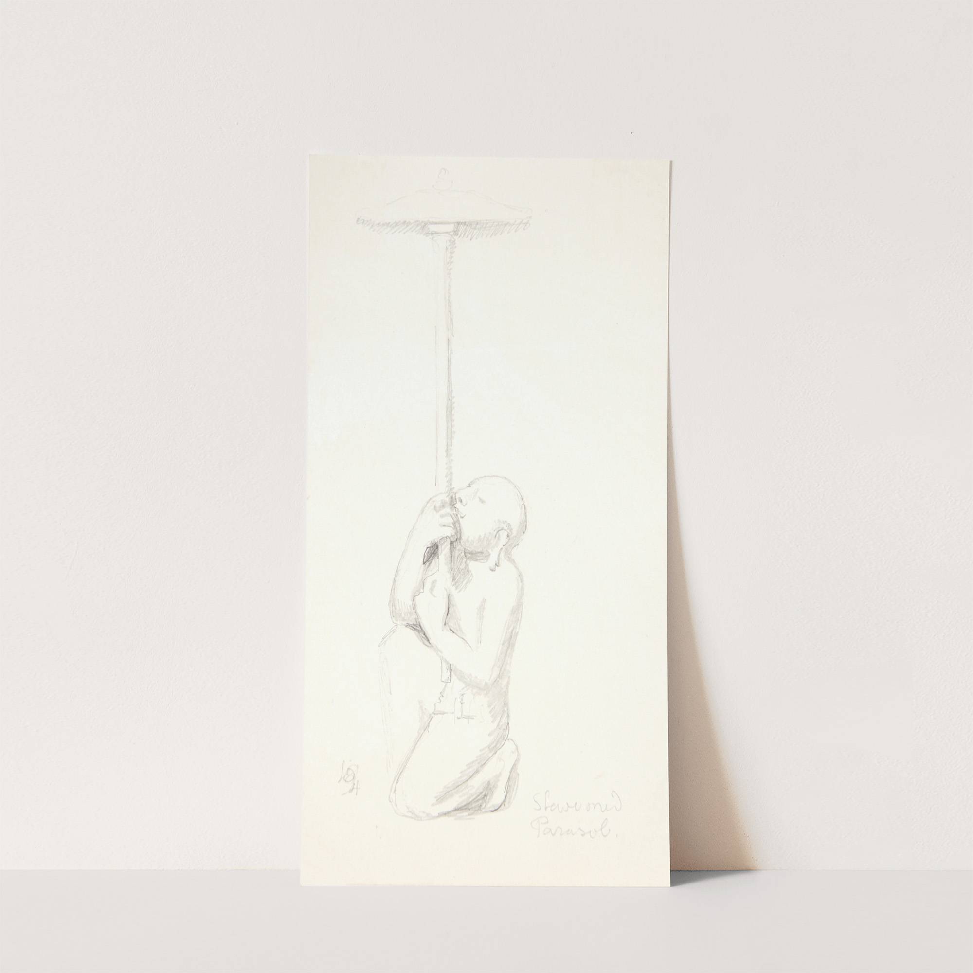 Slave med parasol Studieblad efter relieffer i Borobudur, Java by Svend Rathsack - Wall Art Print