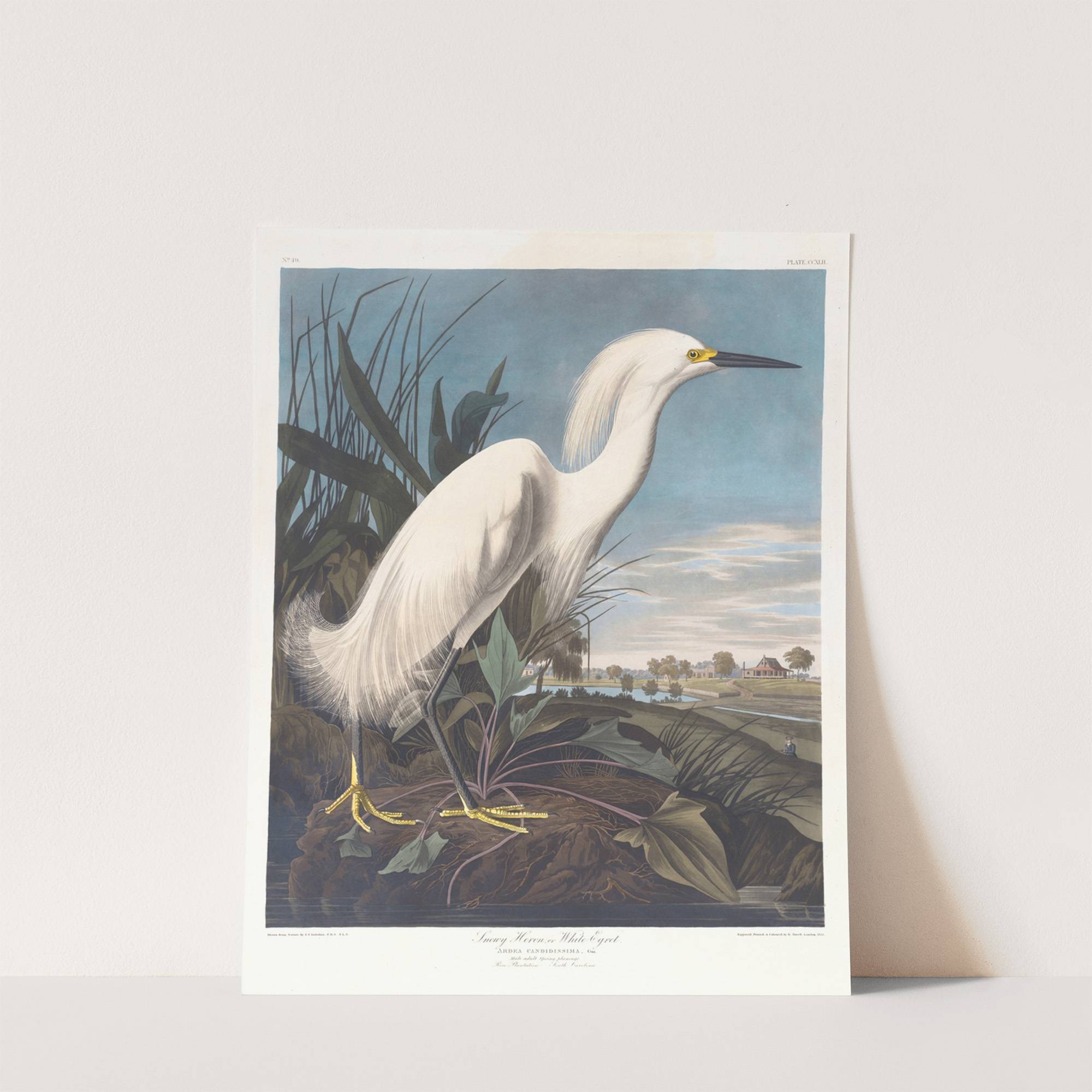 Snowy heron or white egret by John James Audubon  - Wall Art Print