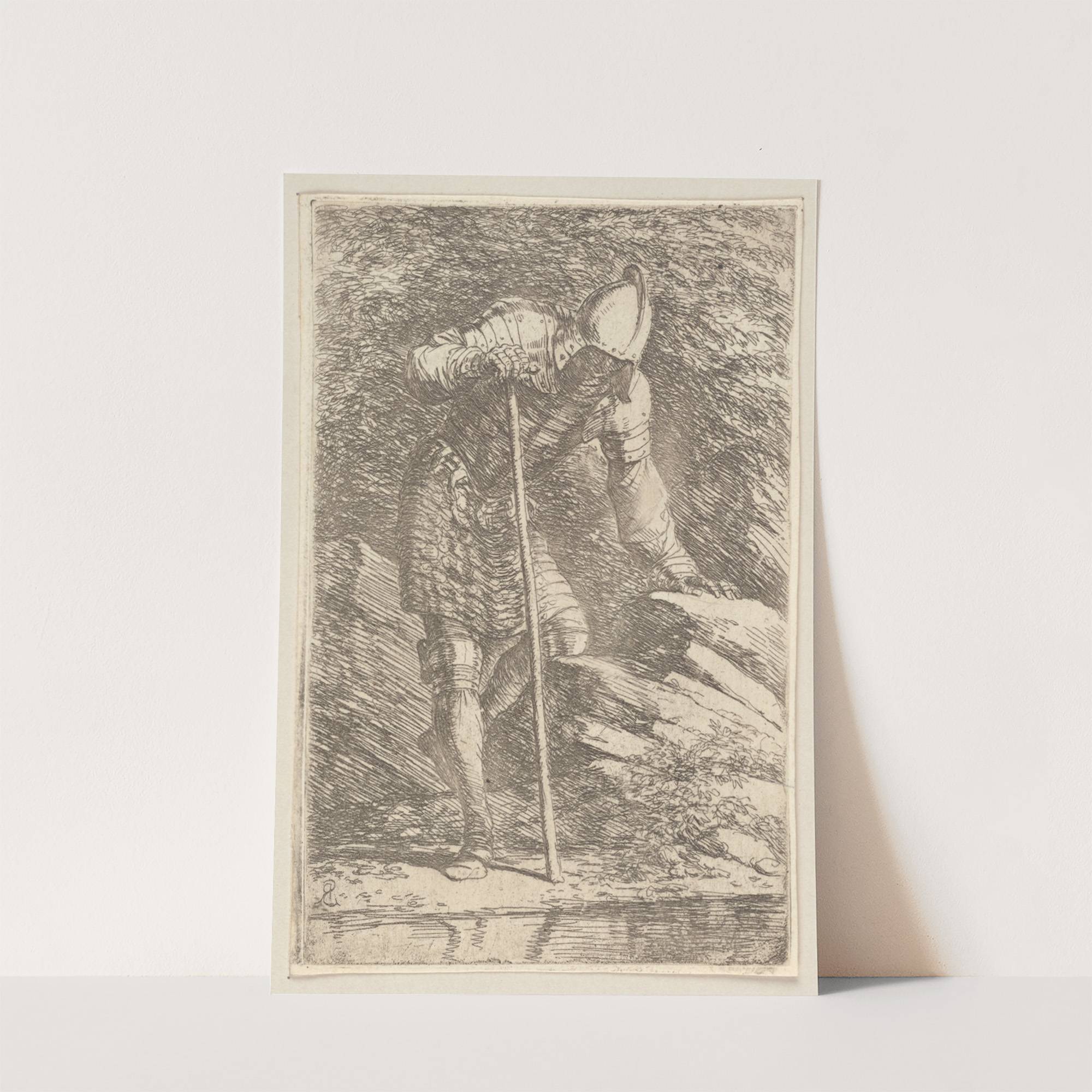 Soldier in Helmet and Armor Regarding a Stream by Salvator Rosa - Wall Art Print