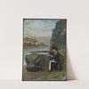 This vibrant art print features "Soldier with Rifle" by Andreas Bloch, capturing a serene yet intense moment in nature. The soldier, dressed in traditional black military attire with a tall black hat and white trousers, sits on a rugged rock,...