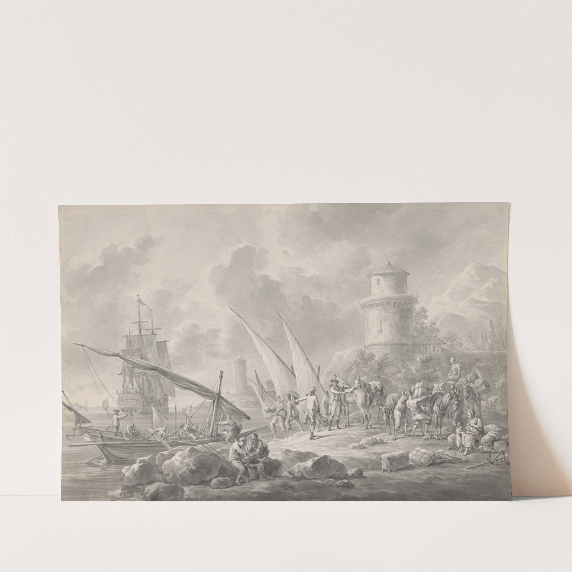 Soldiers Loading Barges for a Large Sailing Ship Along the Coast by Dirk Langendijk - Wall Art Print