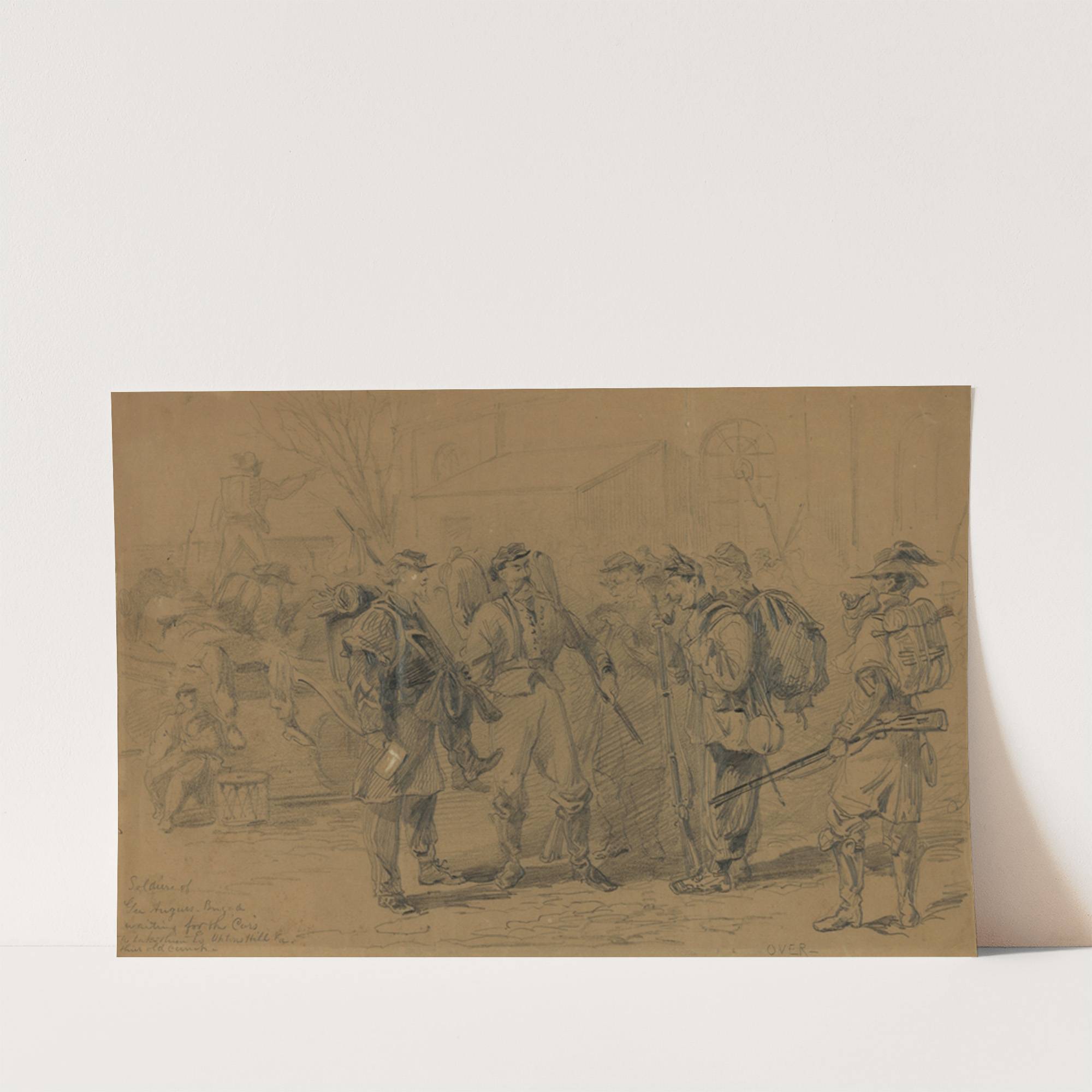 Soldiers of Gen Augurs Brigade waiting for the cars to take them to Uptons Hill, Va. their old camp by Arthur Lumley - Wall Art Print
