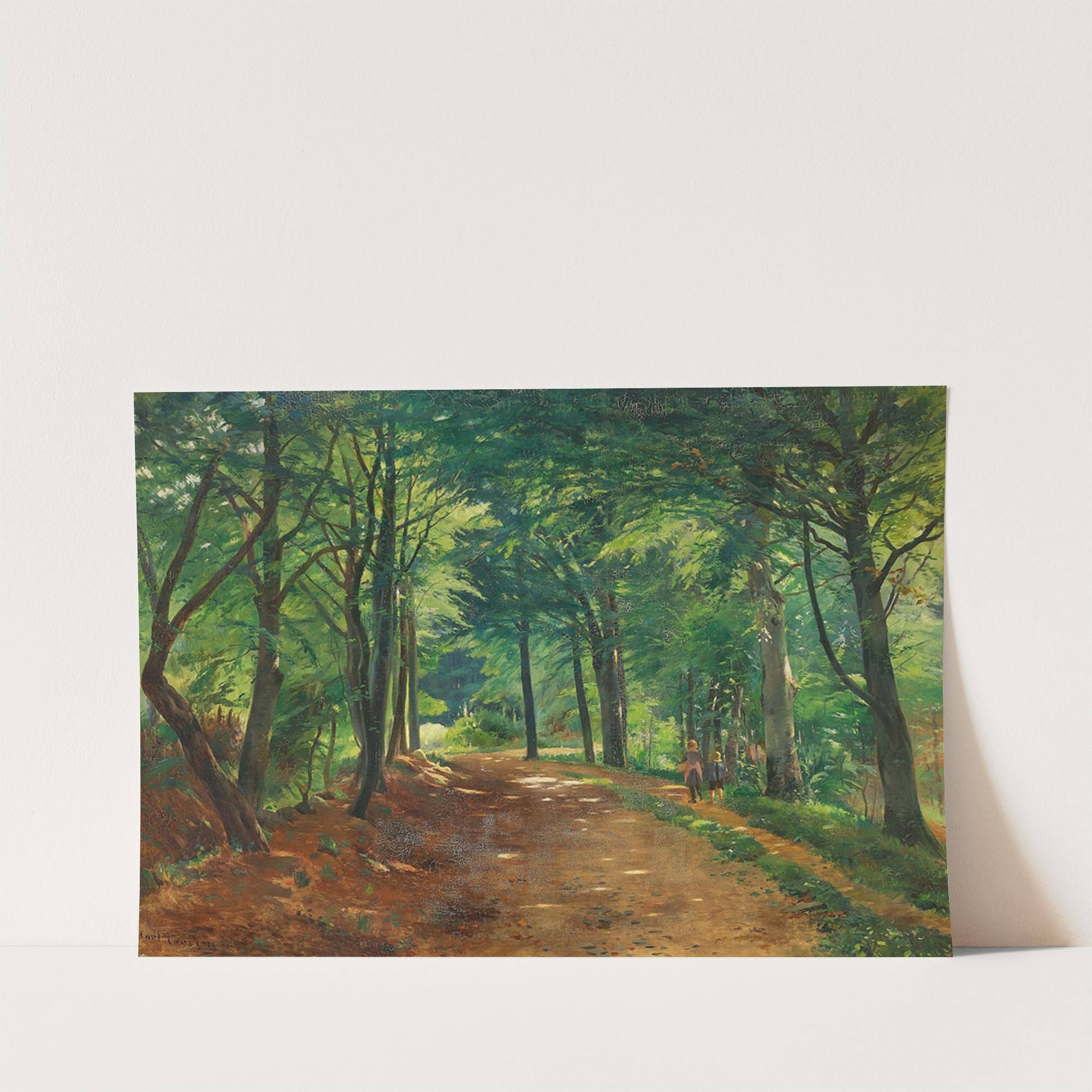 Sommerdag i skoven med to børn på en sti by Carl Carlsen - Wall Art Print