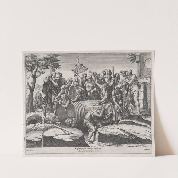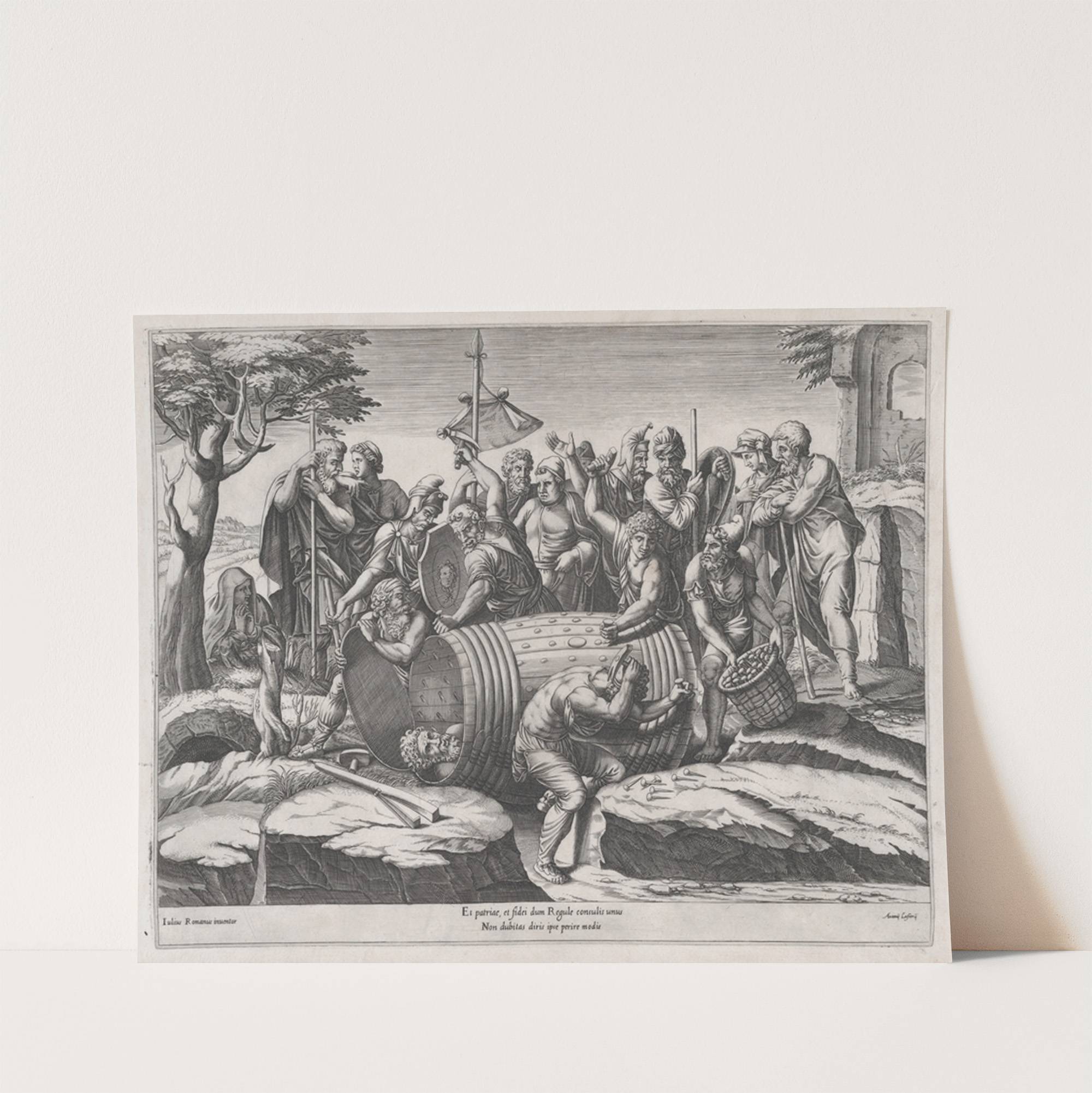 Speculum Romanae Magnificentiae- Attilius Regulus in a Barrel by Diana Scultori - Wall Art Print