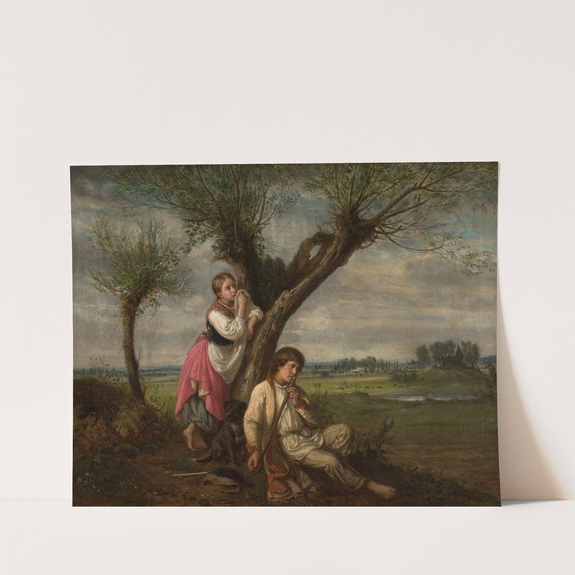 This beautiful oil painting titled "Springtime" by Aleksander Kotsis features two young children in a serene countryside setting. The composition is rich with detail and color, capturing the essence of spring.In the foreground, two children are the focal point. The...
