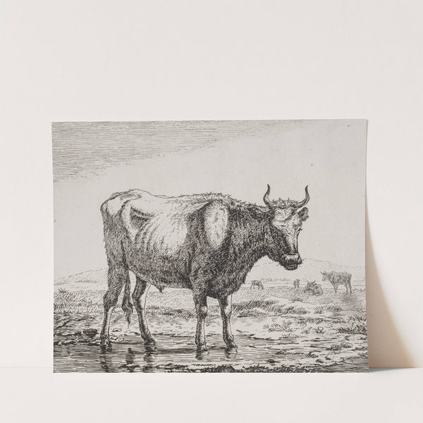 Stående ko ved vandhul by Christian Holm - Wall Art Print