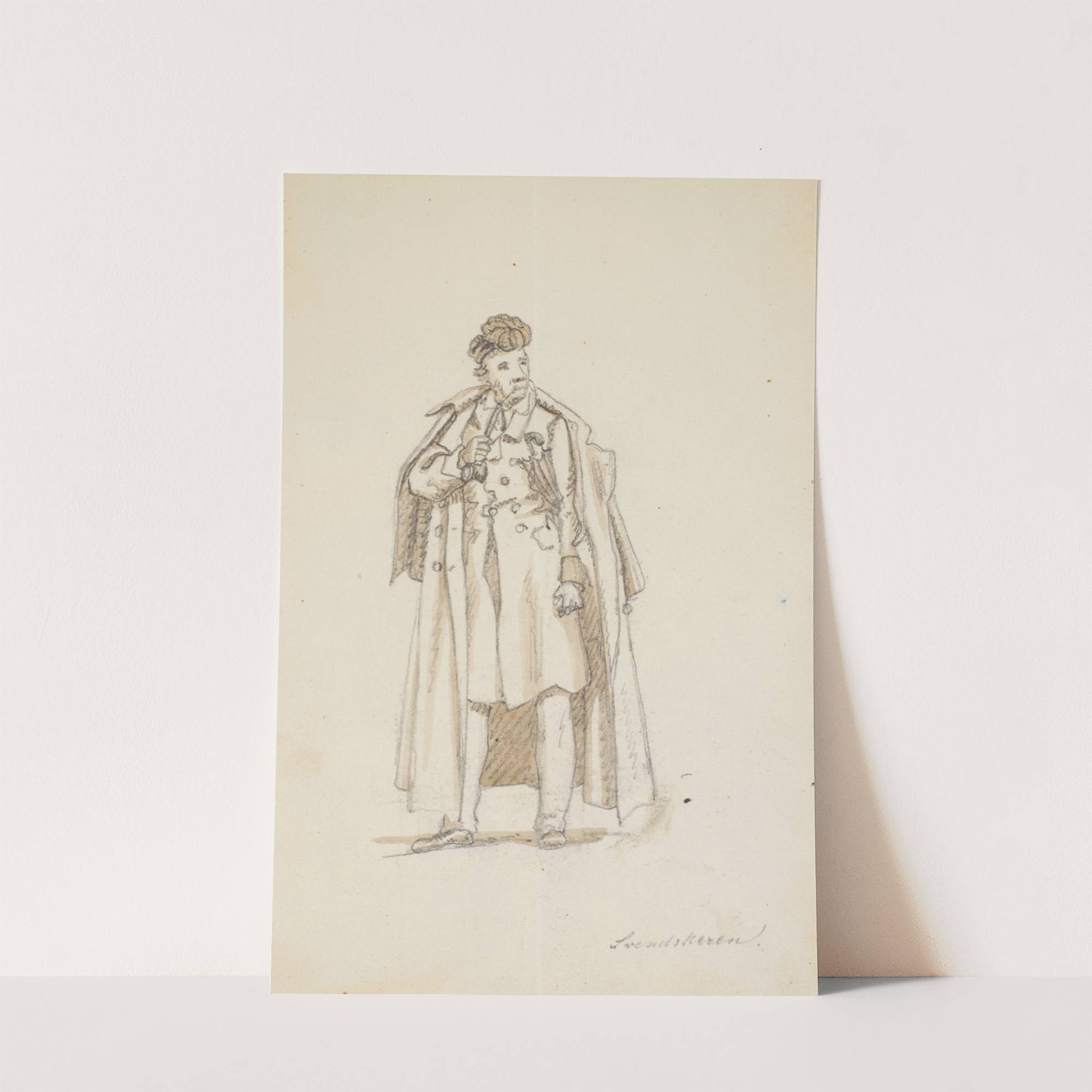 Stående mand med kappe og pibe by Martinus Rørbye - Wall Art Print
