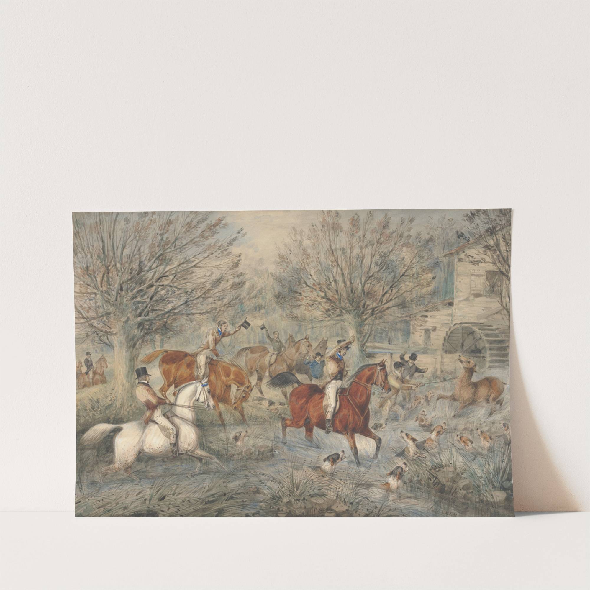 Stag Hunting: The Hind at Bay; In a Mill-Stream Below a Water-Mill, Right… by Samuel Alken - Wall Art Print