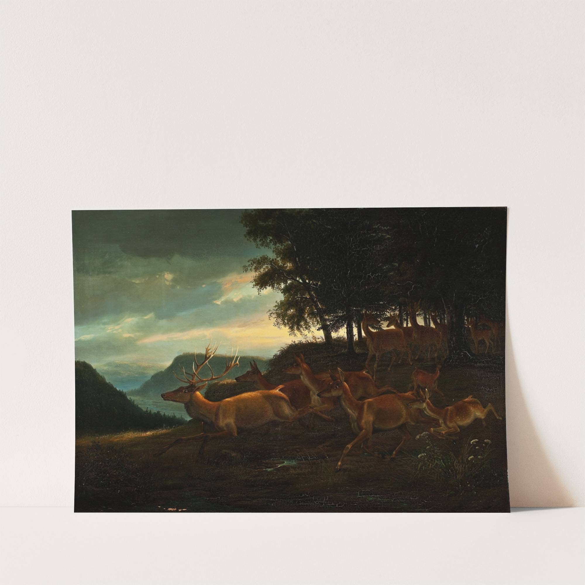 Stag In A Wood by Johann Erdmann Gottlieb Prestel  - Wall Art Print