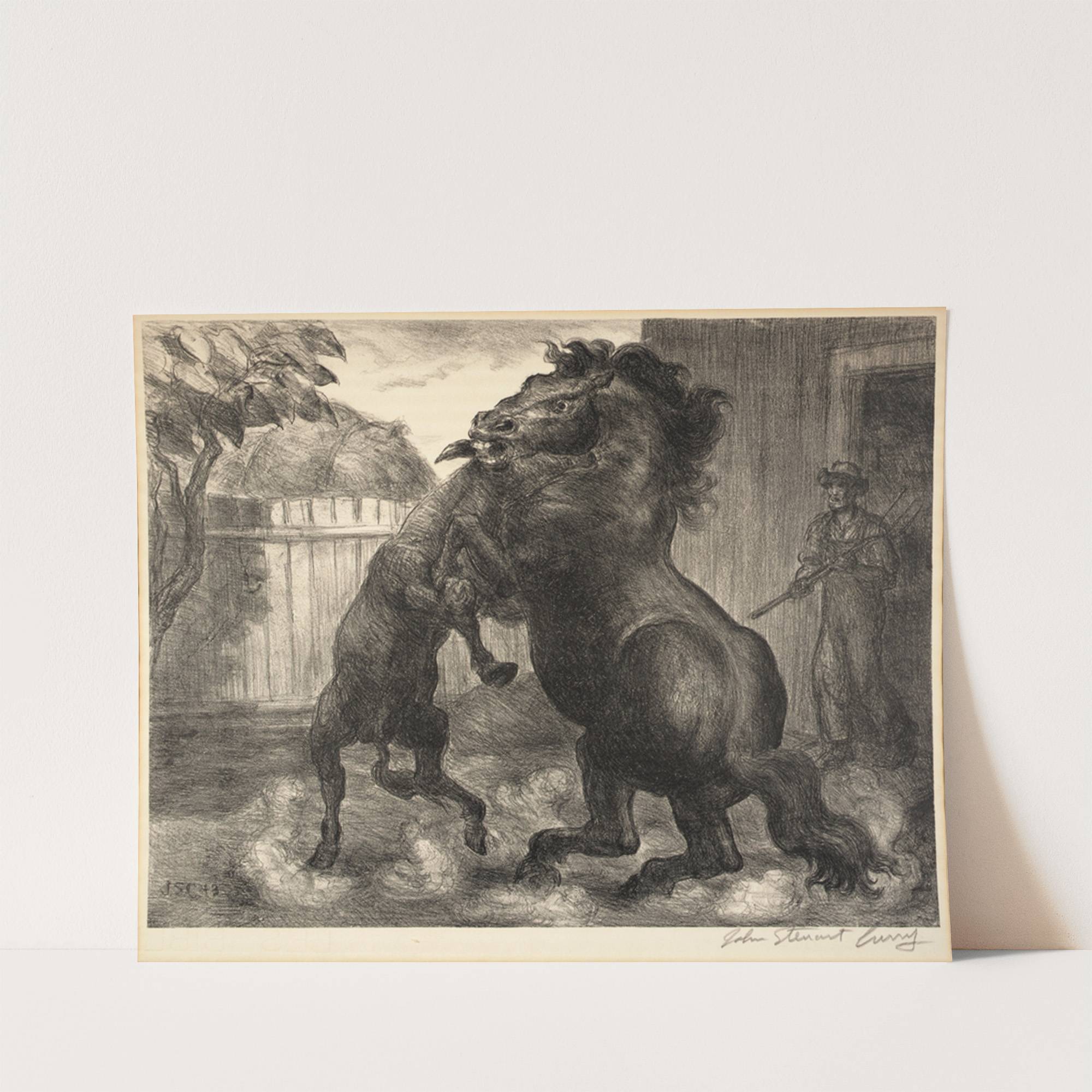 Stallion and Jack Fighting by John Steuart Curry - Wall Art Print