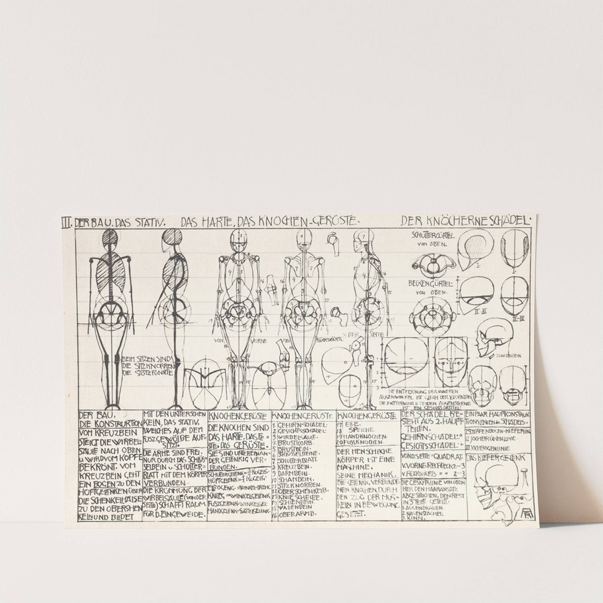 This black and white sketch features "Statik und Dynamik des menschlichen Körpers Pl.03" by Alexander Rothaug, created in a detailed and informative style. The artwork is composed of multiple human figures with various postures and anatomical annotations. Each figure is...