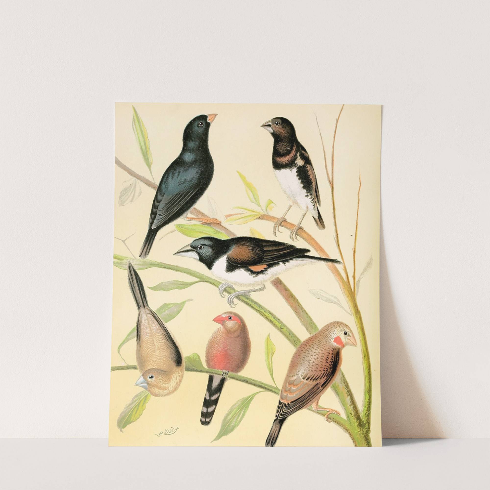 Steel Finch, Pied Grass Finch, Bronze Mannikin, Silver-Bill, St. Helena Waxbill, Cut-Throat by W. A . Blakston - Wall Art Print