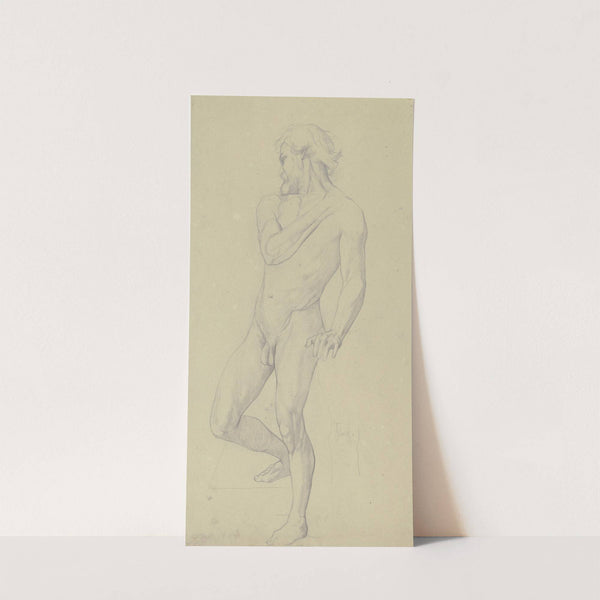 Stehender männlicher Akt in Vorderansicht, den rechten Fuß auf ein Podest gestellt by Victor Müller - Wall Art Print