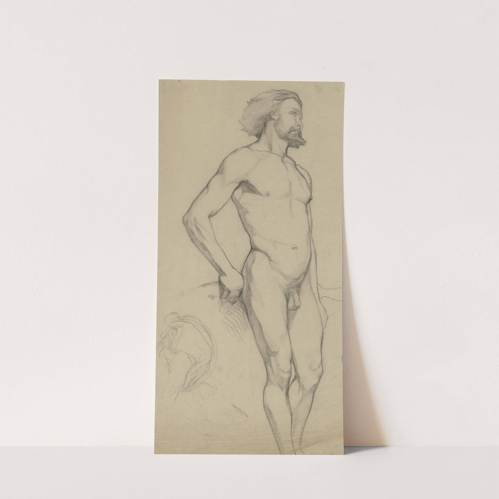 Stehender männlicher Akt, nach rechts gewandt an ein Möbelstück gelehnt by Victor Müller - Wall Art Print