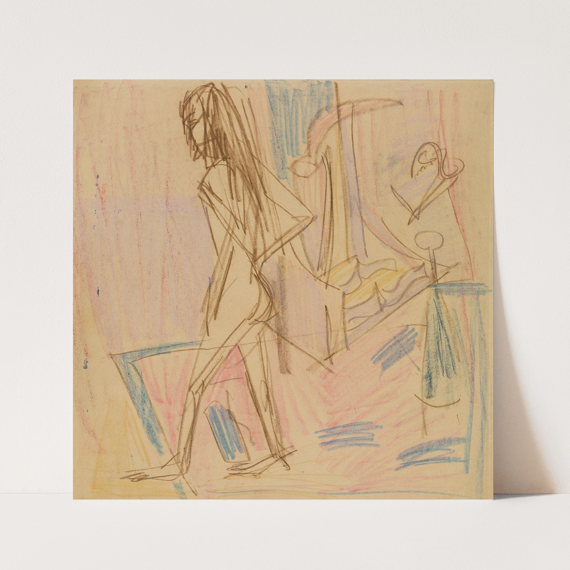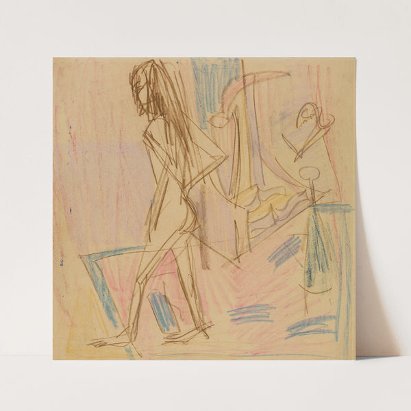 Stehender weiblicher Akt auf Teppich (ca 1913) by Ernst Ludwig Kirchner - Wall Art Print