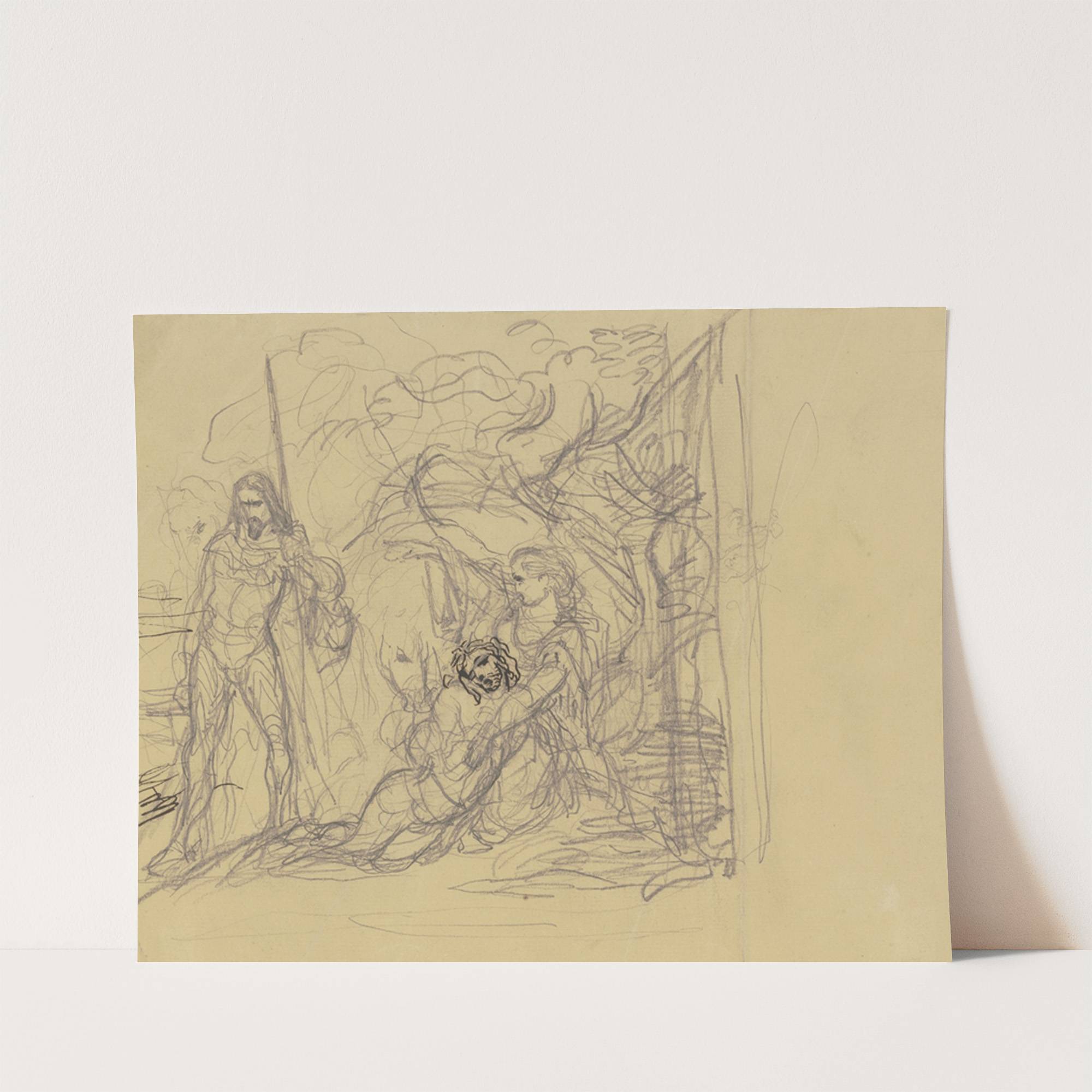 Sterbender, gestützt von einer Frau, links ein trauernder Krieger by Victor Müller - Wall Art Print
