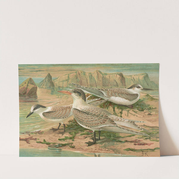 Sterna nilotica Hasselqu, Sterna tschegrava Lepech, Sterna cantiaca Gm by Johann Friedrich Naumann - Wall Art Print