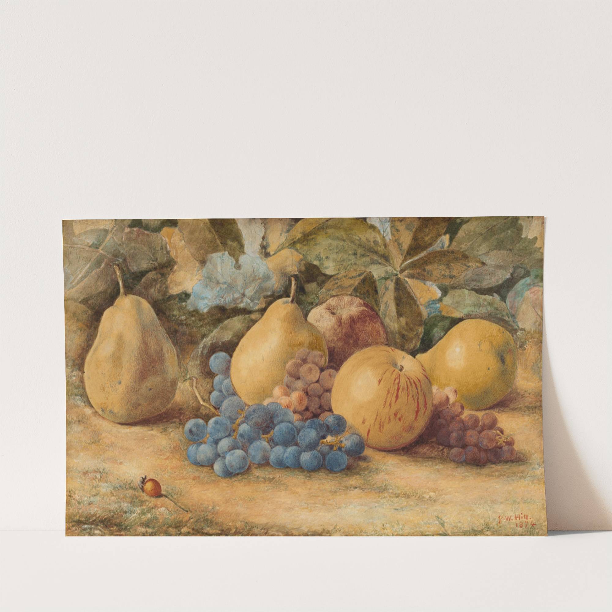 Still Life of Fruit – Apples, Pears, and Grapes on Ground by John William Hill - Wall Art Print