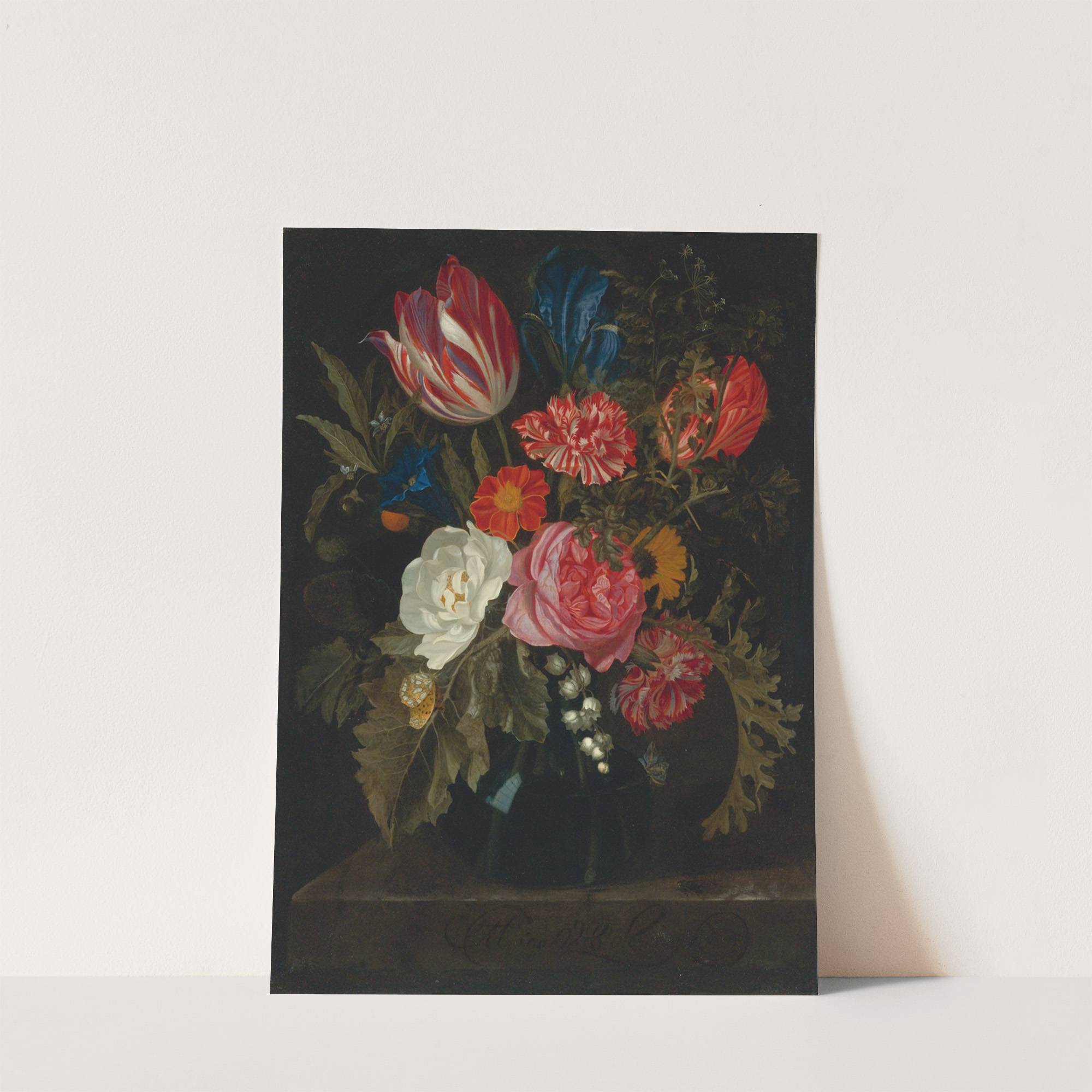 Still Life Of Roses, Carnations, A Tulip And Other Flowers In A Glass Vase by Maria van Oosterwijck - Wall Art Print