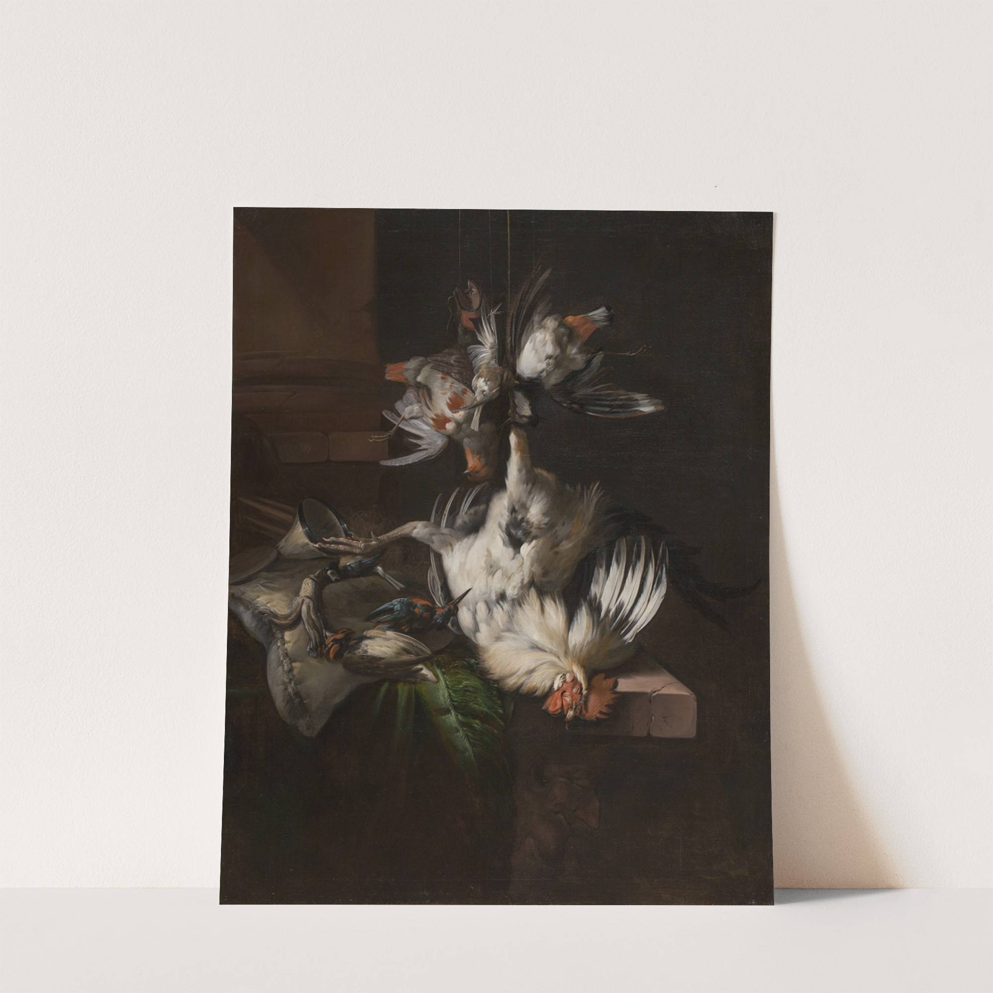 Still life with a white rooster by William Gouw Ferguson - Wall Art Print