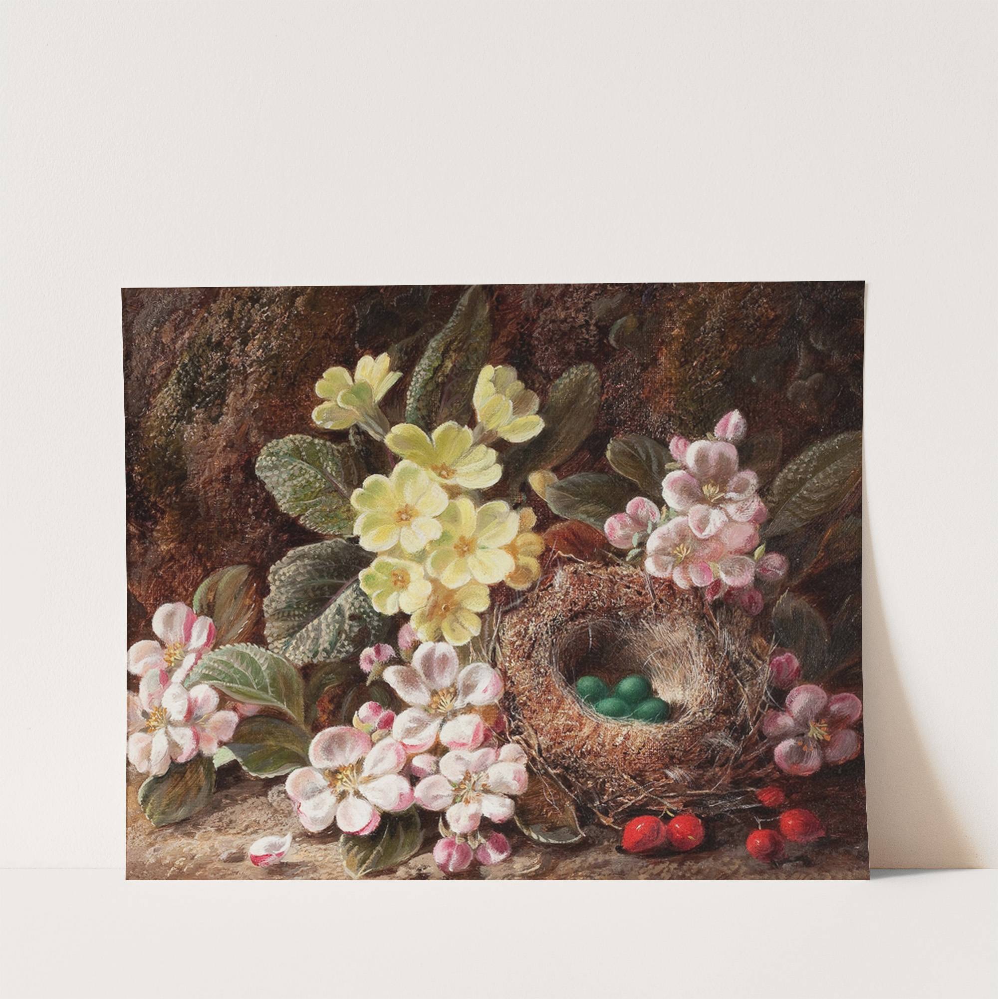 Still Life with Apple Blossom, Primroses, and Bird’s Nest by George Clare - Wall Art Print