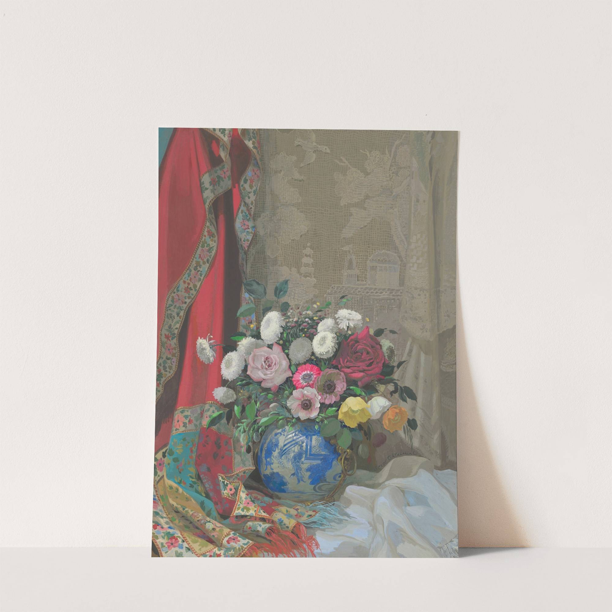 Still life with roses, anemones and chrysanthemums in a Chinese vase by Sergei Chekhonin - Wall Art Print