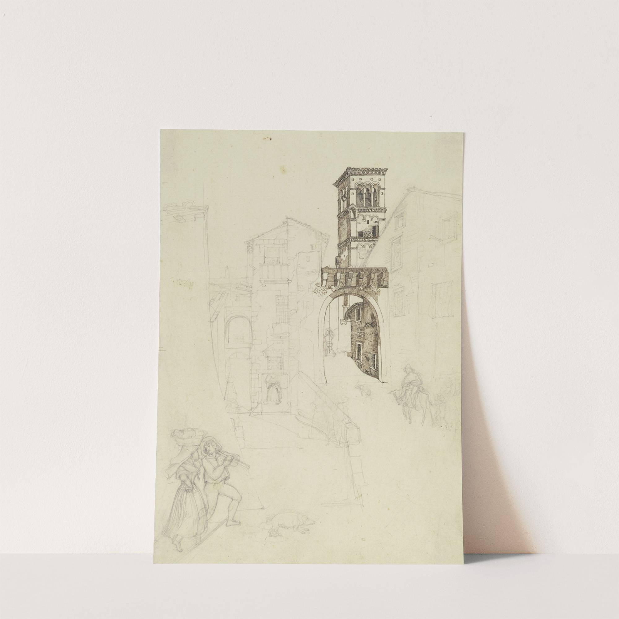 Straße in Rom mit einem Torbogen und dem Kirchturm von Santa Sabina by Heinrich Hübsch - Wall Art Print