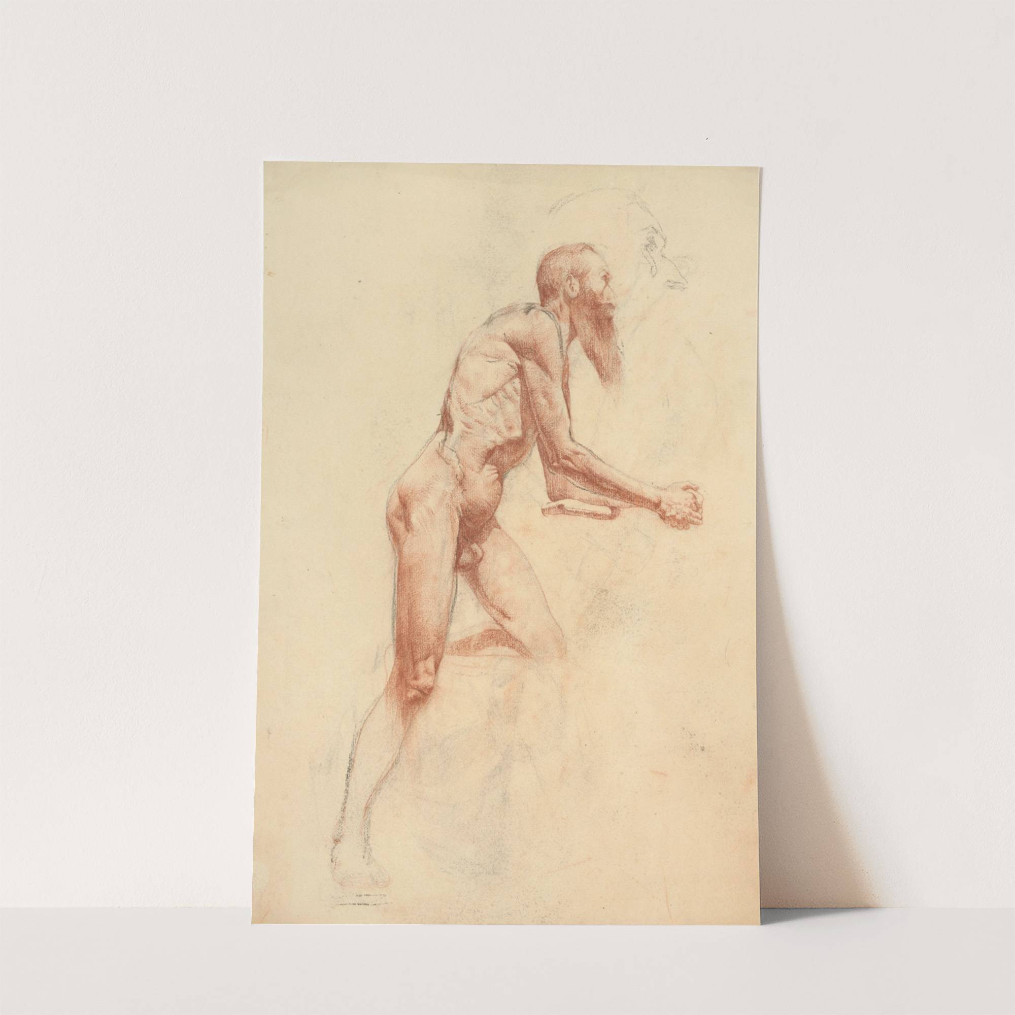 This captivating artwork is titled "?t?dia aktu starca" by ?kos Aranyossy. It features a life study of an elderly man captured in a dynamic, side-profile pose. The artist's use of soft sepia tones brings a warm, nostalgic feel to the...