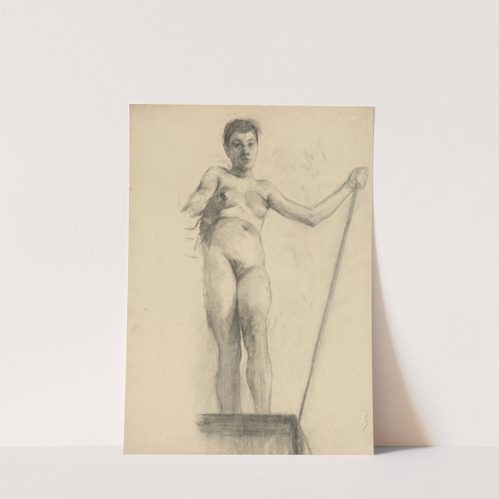 This stunning black-and-white drawing by Ákos Aranyossy captures a strikingly realistic yet slightly abstract portrayal of a nude female figure standing tall and confidently. The artist employs soft, sketch-like strokes to create a sense of movement and depth, while the...