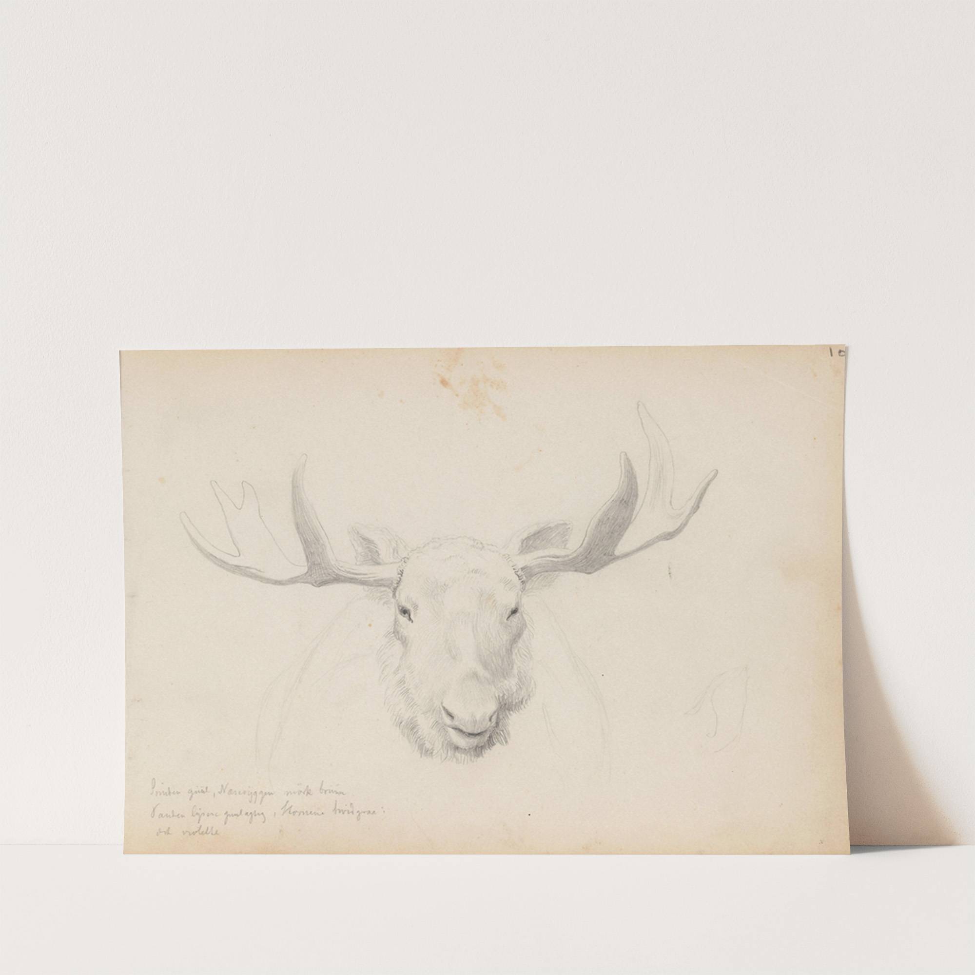 Studie av elghode by Hans Gude - Wall Art Print