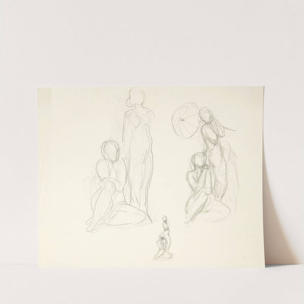 Studieblad med tre udkast til en gruppe med stående og siddende kvinde by Svend Rathsack - Wall Art Print
