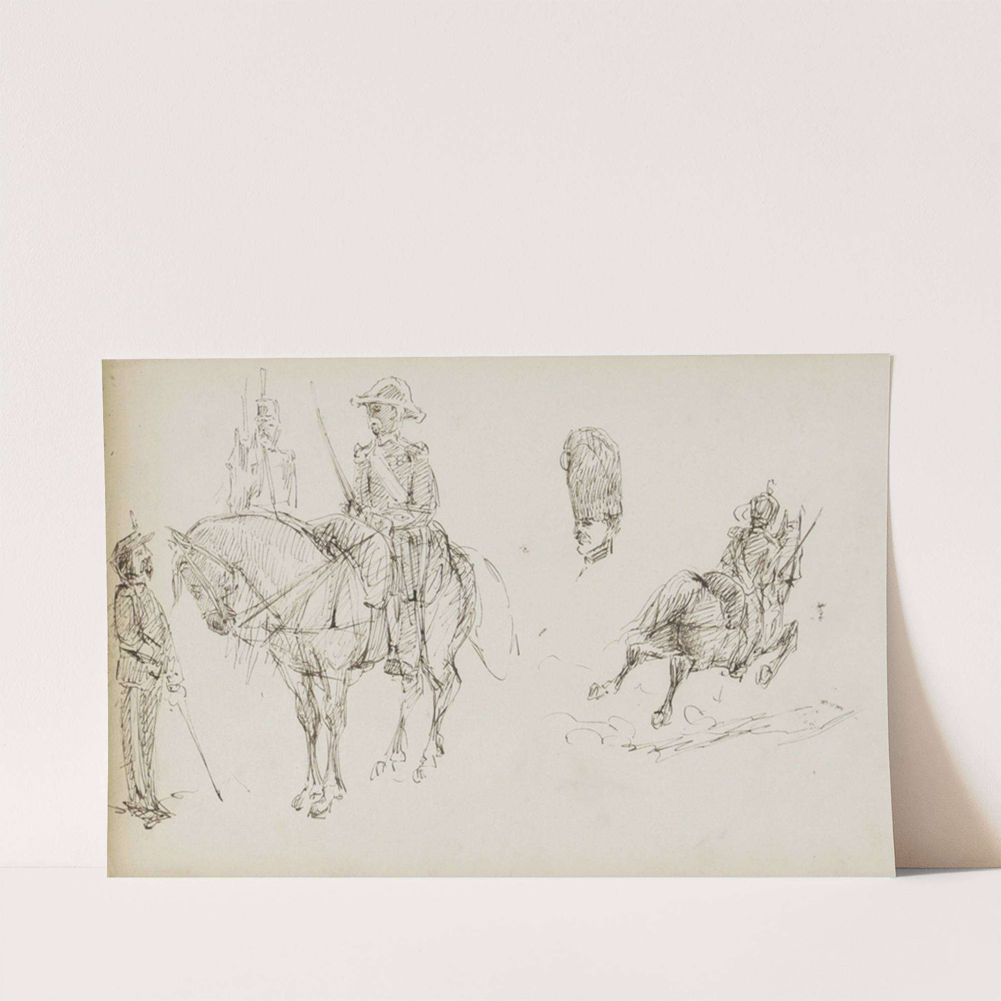 Studieblad, onder andere met militairen te paard by Marius Bauer - Wall Art Print