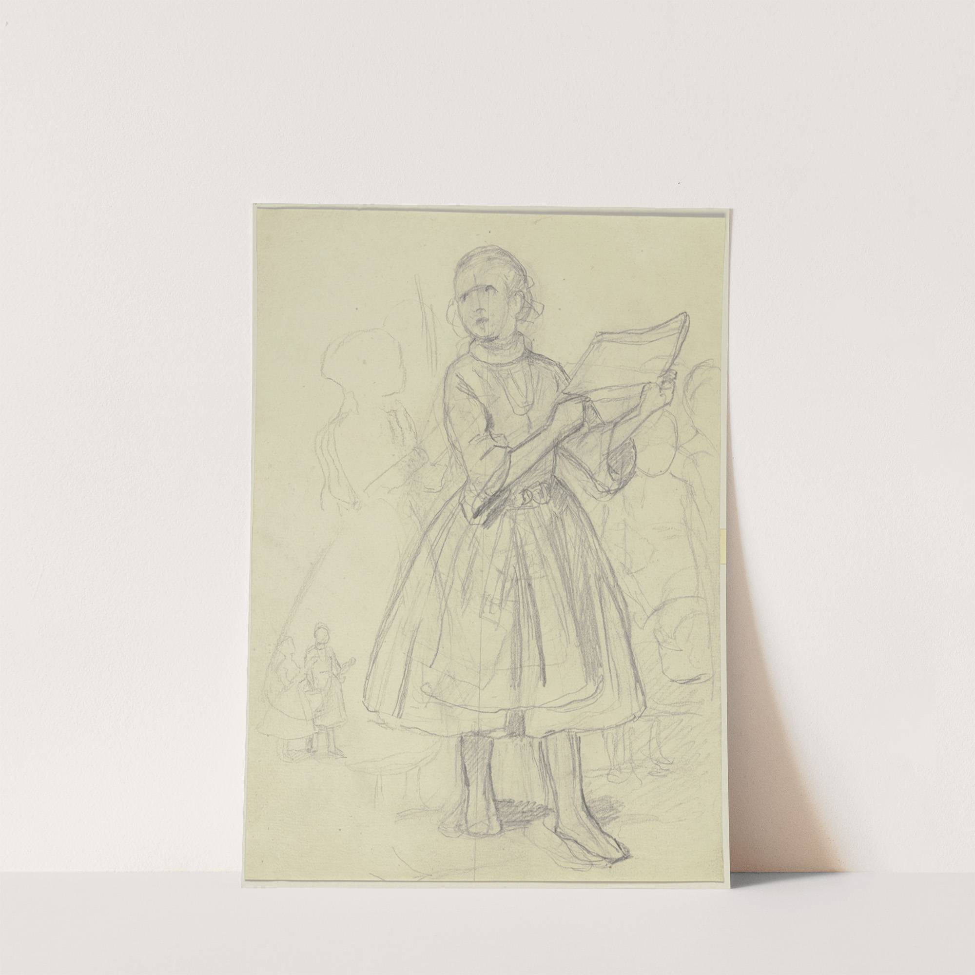 Studienblatt; singende Jungen und Mädchen by Jakob Becker - Wall Art Print