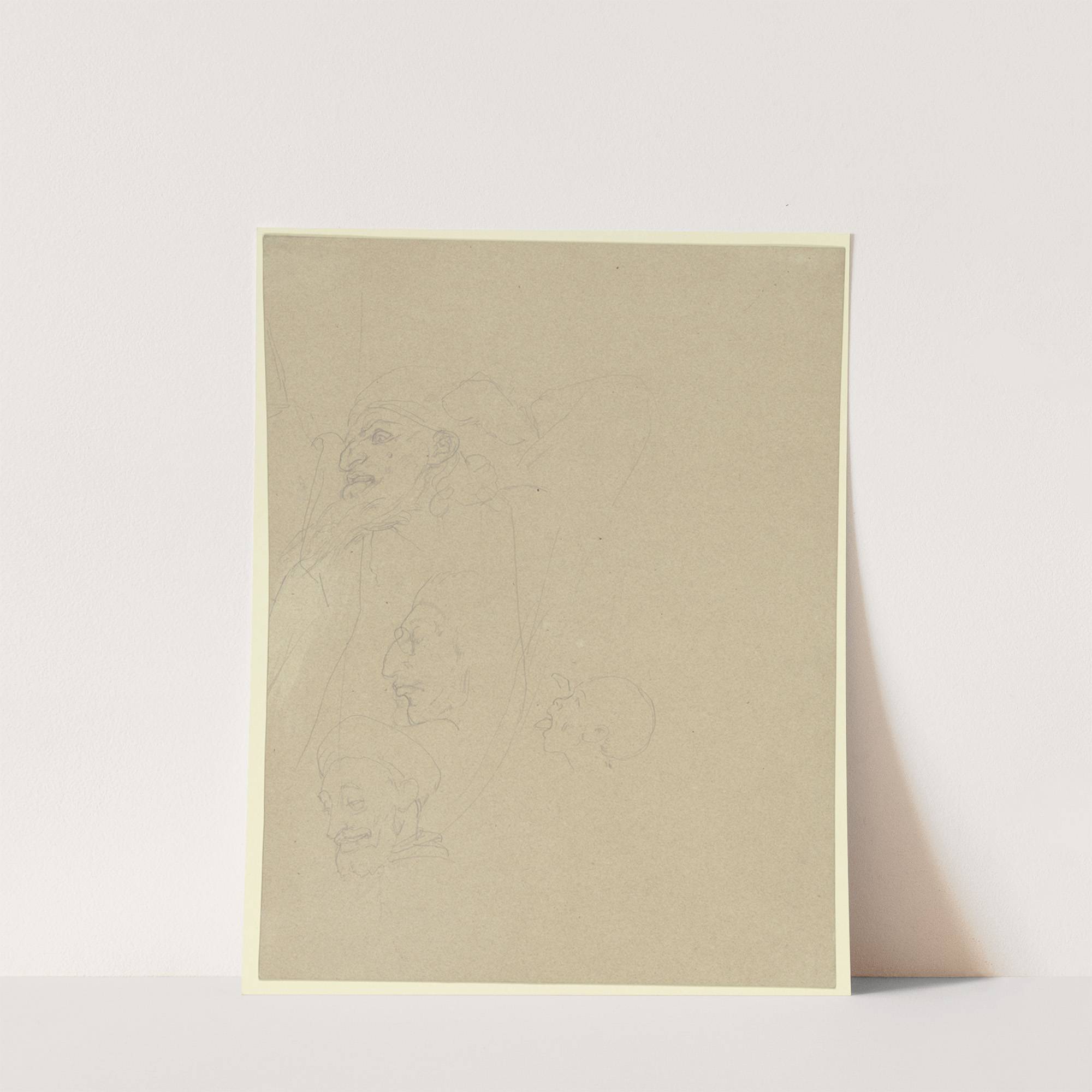 Studienblatt; Vier grimassierende Köpfe by Eduard von Steinle  - Wall Art Print